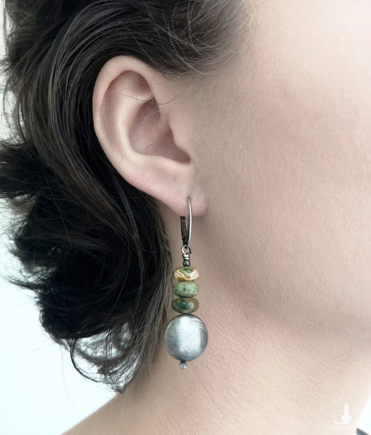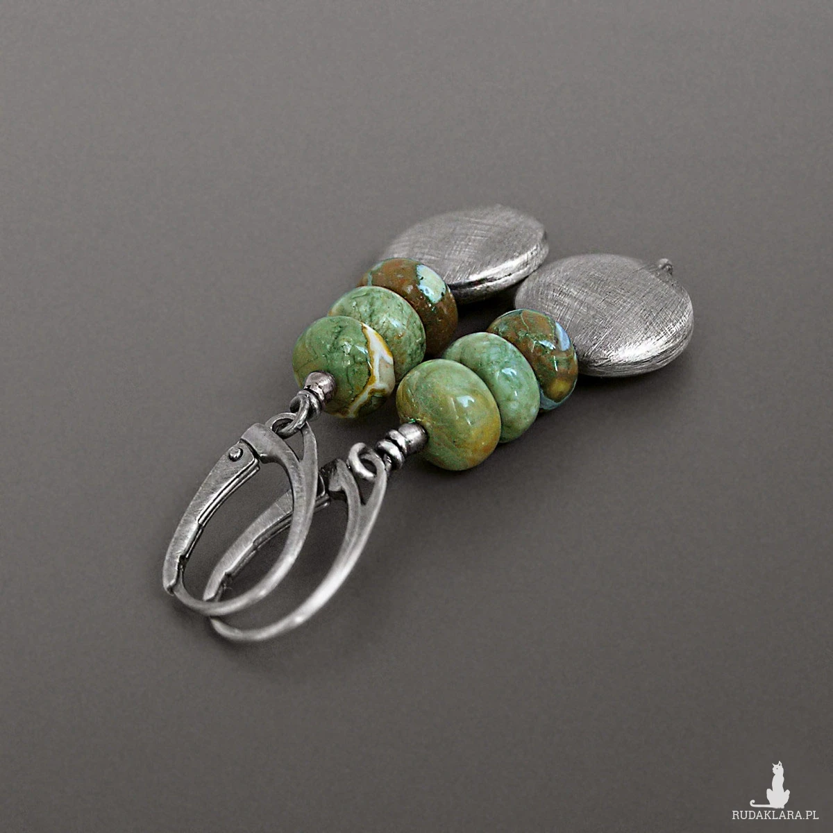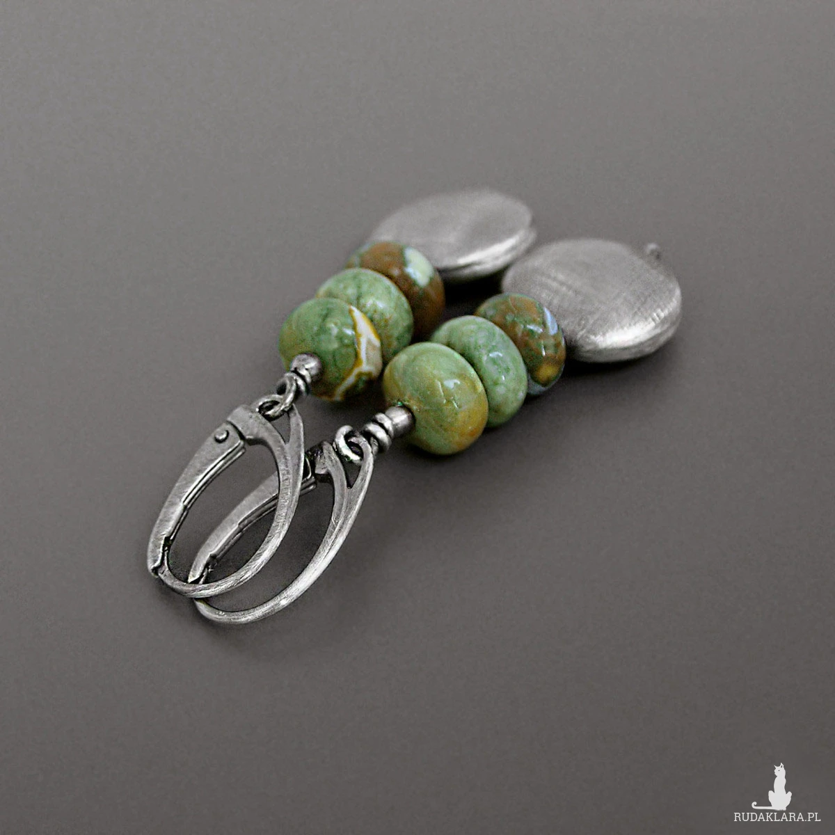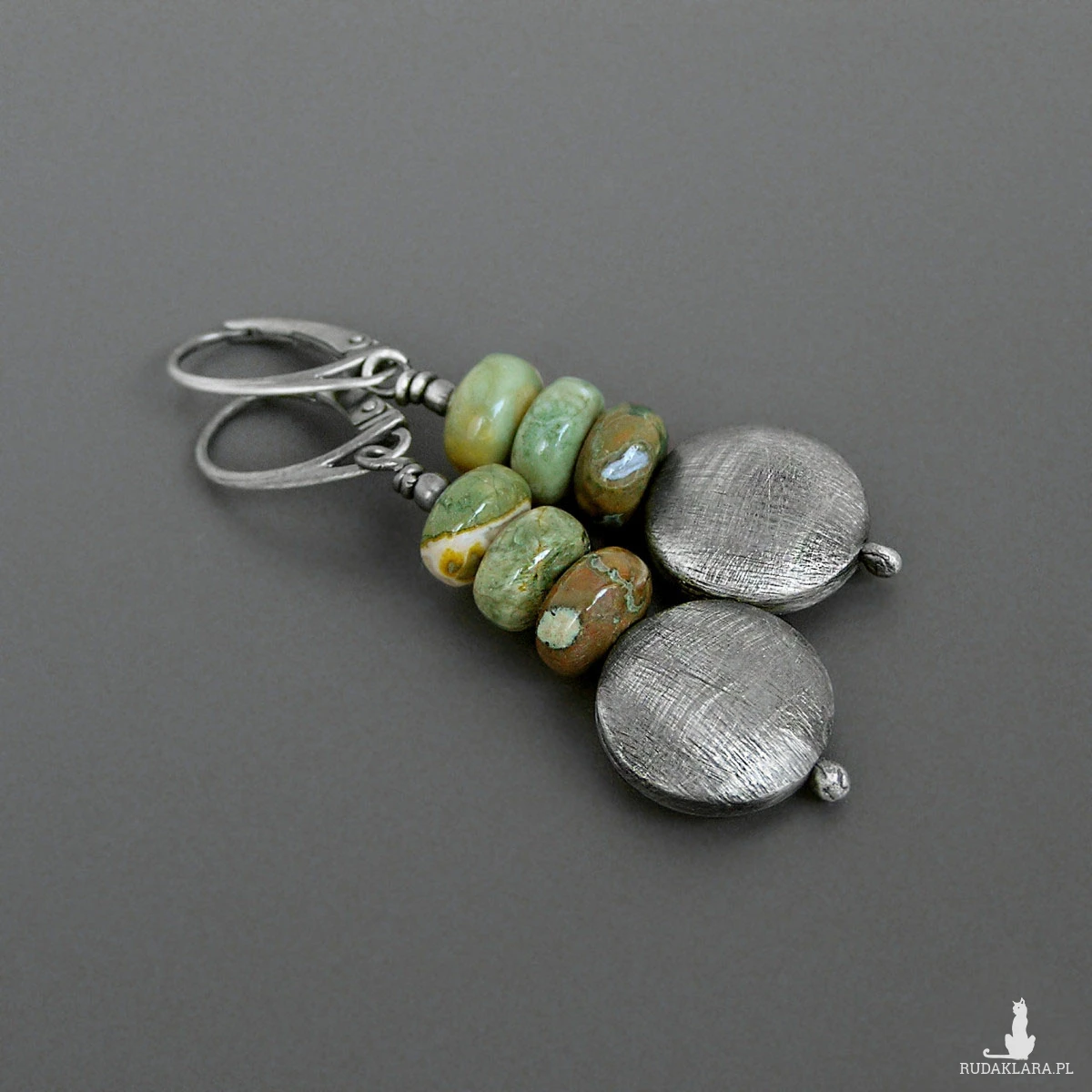 Surowe kolczyki, riolit, srebro 925