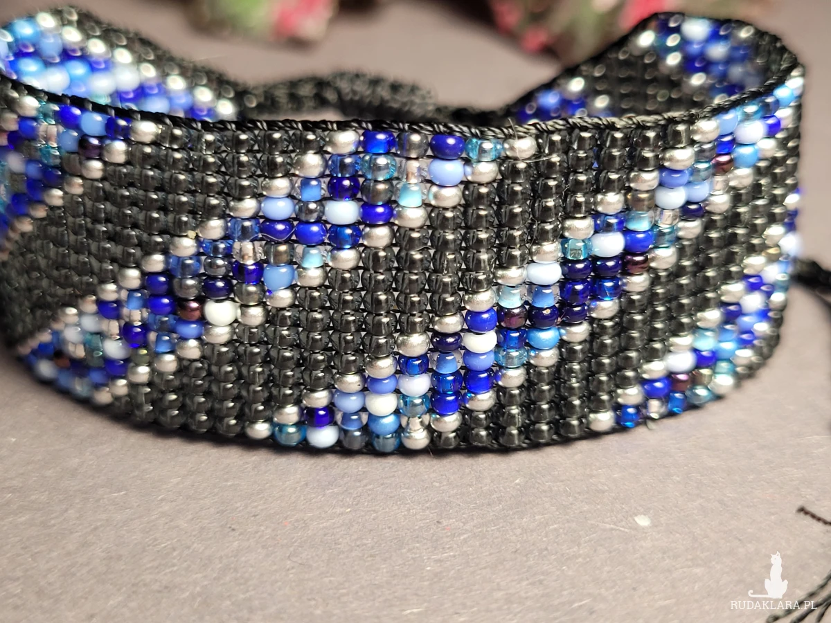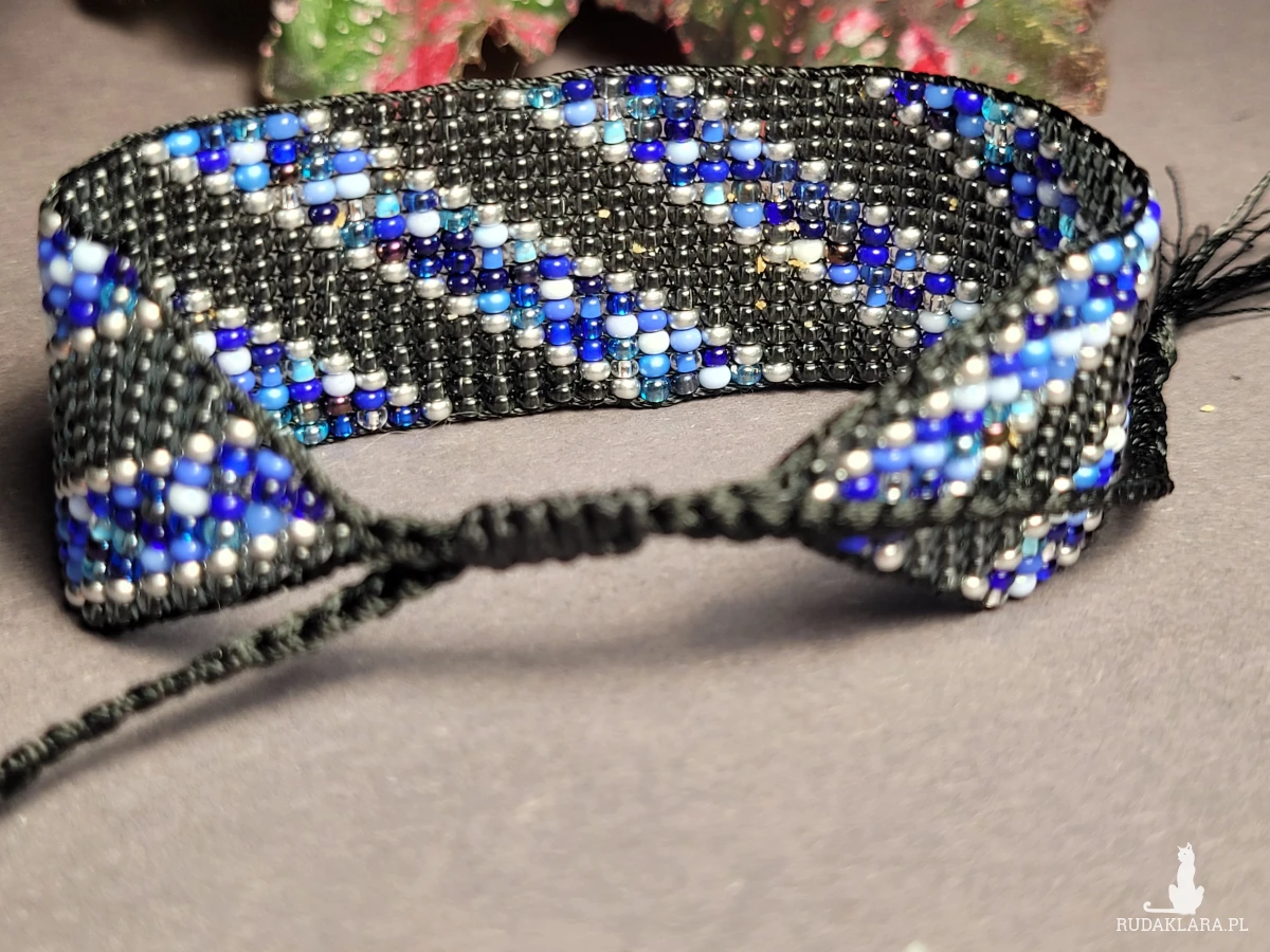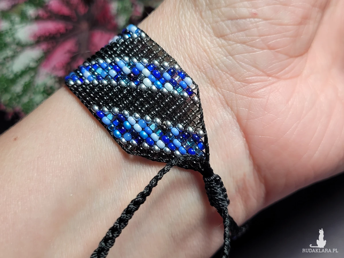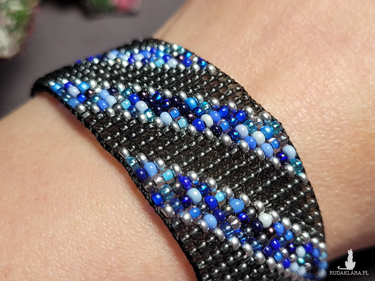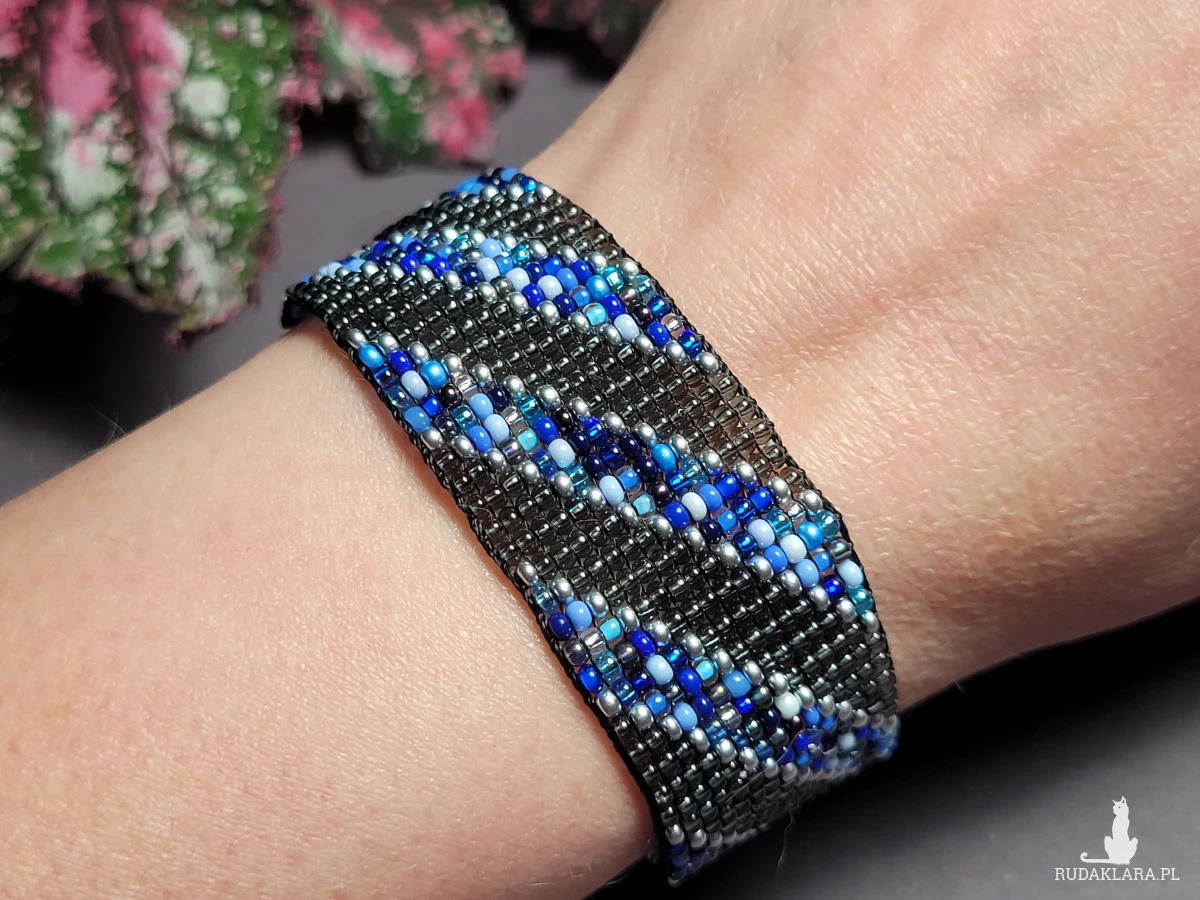 Bransoletka "Paski" własnoręcznie zrobiona na krosnie ze szklanych koralików czeskich.