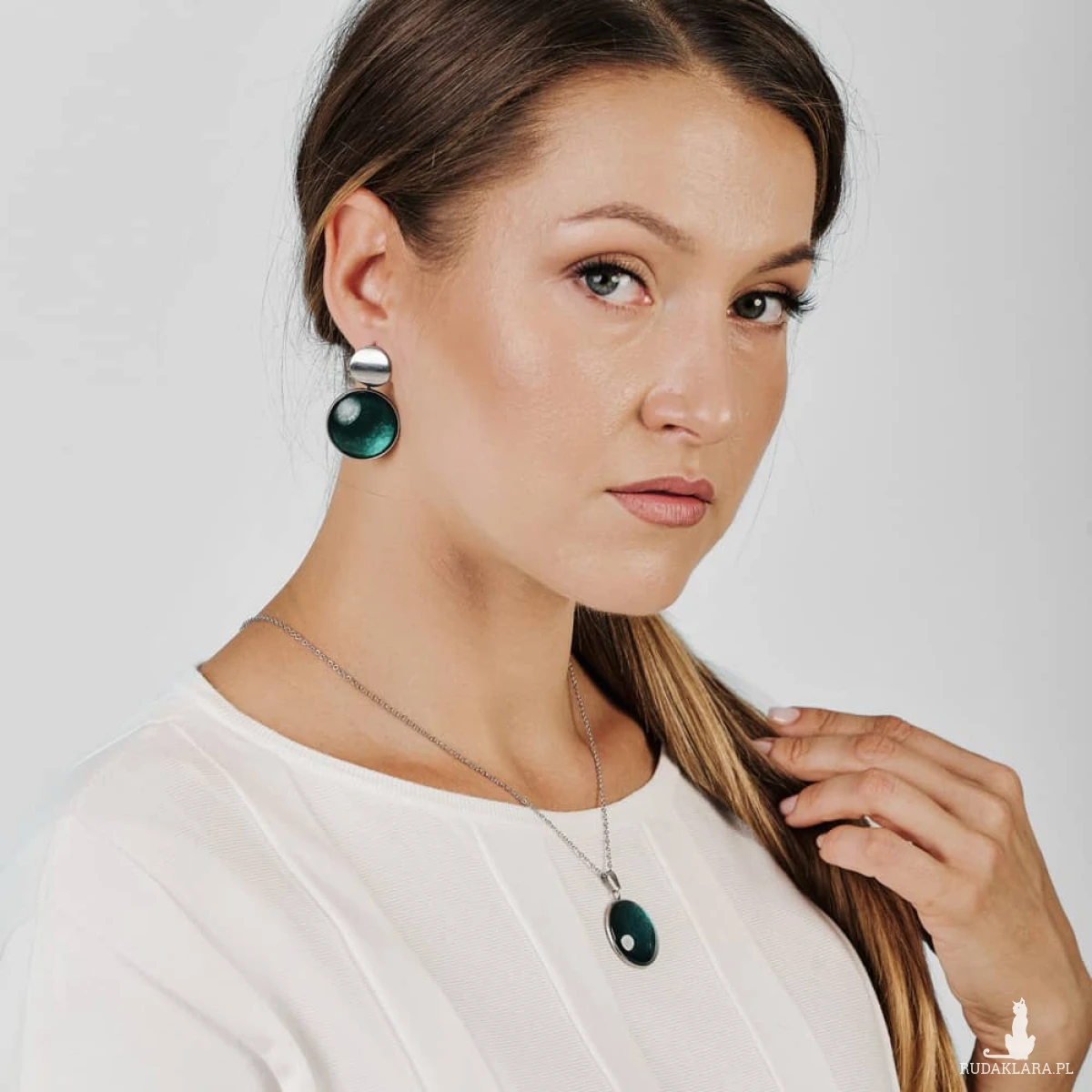 Te pełne blasku kolczyki są częścią kolekcji “W blasku perłowego księżyca”. Kolczyki wykonane są z ręcznie malowanych kaboszonów umieszczonych w bazach ze stali szlachetnej. Szklane elementy zachwycają subtelnym, opalizującym blaskiem, który jest niczym odbicie księżyca na tafli wody. Kolczyki mienią się w świetle, przyciągając wzrok i dodają elegancji każdej stylizacji. Ten dodatek jest idealny dla osób ceniących sobie wyrafinowaną i ponadczasową biżuterię. Materiał: stal szlachetna, malowane ręcznie szkło Wykończenie: połysk Długość kolczyków: ok 4,5 cm Średnica kaboszonu: 25 mm Waga pary kolczyków: ok 14,5 g SKU: e9/1 Jak dobierać komplety? Kolory na zdjęciach mogą się różnić ze względów technicznych. Aby dobrać identyczny odcień, zwróć uwagę na numer SKU produktu. Pierwsza część to numer modelu, a numery po “/” to kolor, np. /17 oznacza morski perłowy. Produkty z tym samym SKU po "/" mają identyczny kolor. Dzięki temu możesz łatwo tworzyć komplety, mając pewność, że biżuteria jest w tym samym odcieniu. Stwórz własny komplet! Jeśli nie ma biżuterii w wybranym modelu lub kolorze którego szukasz, możesz ją zamówić indywidualnie. Wyślij do nas maila z nazwą, numerem modelu i kolorem, a my w miarę możliwości wykonamy biżuterię na zamówienie. Termin realizacji ustalamy indywidualnie. Biżuteria zostanie elegancko zapakowana. W przypadku zakupu kompletu, biżuteria zostanie zapakowana razem. Kolory na zdjęciach mogą delikatnie różnić się od rzeczywistych.