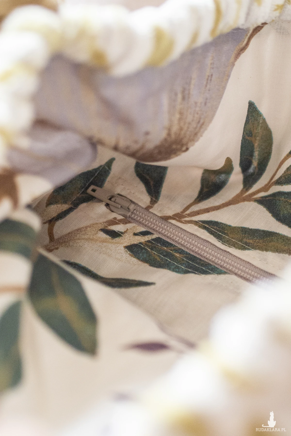 Torba worek wykonana z grubego sztruksu w kwiaty w kolorze ecru.