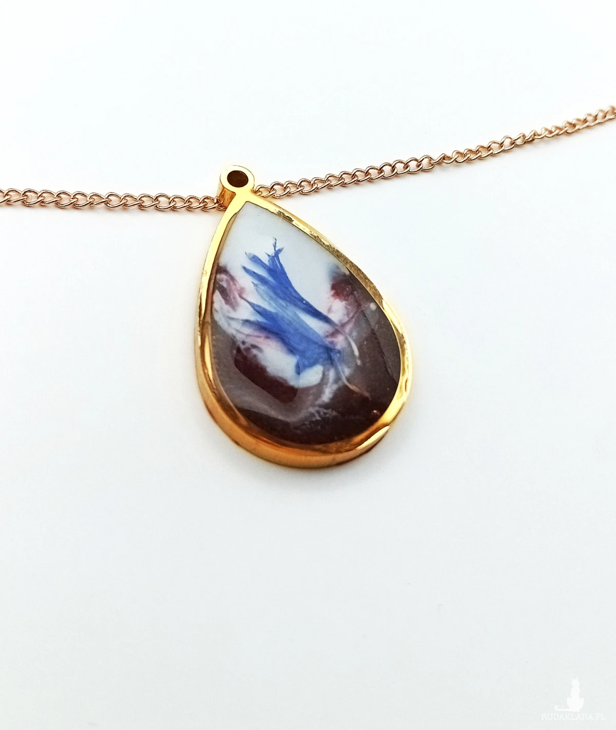 Szukasz dodatku, który podkreśli Twoją wyjątkowość? Przedstawiam unikalny, ręcznie wykonany wisiorek z żywicy epoksydowej, ozdobiony suszonym chabrem. Harmonijne zestawienie kolorów – białego, czekoladowego i transparentnego – tworzy elegancką kompozycję, która przyciąga spojrzenia i idealnie wpisuje się w styl boho, naturalny lub klasyczny.