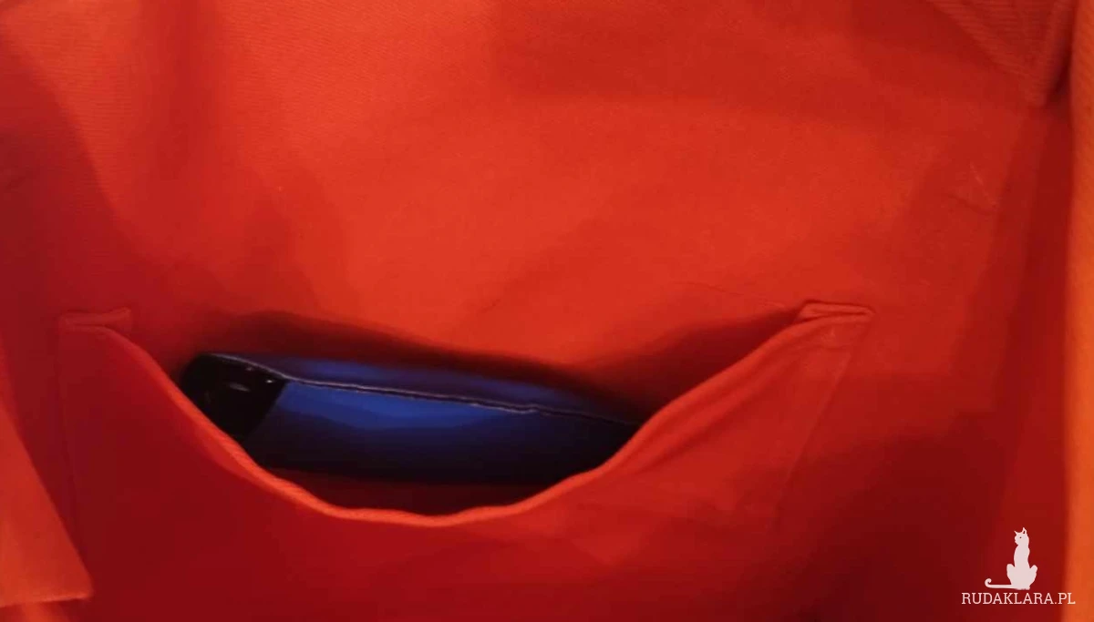 Wewnątrz torby jest mniejsza kieszonka na telefon, klucze.