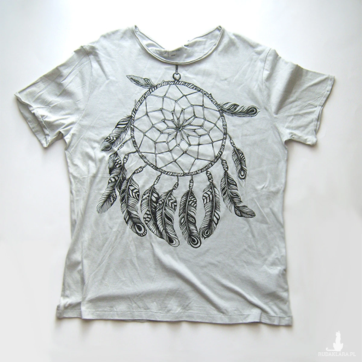 Nowa koszulka z nadrukiem - wzór z łapaczem snów. Rozmiar L. Materiał: 100 % bawełna, prać w 30 stopniach.