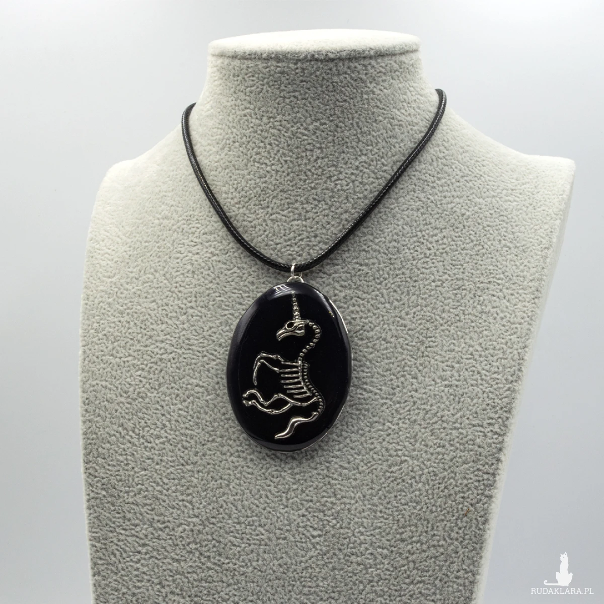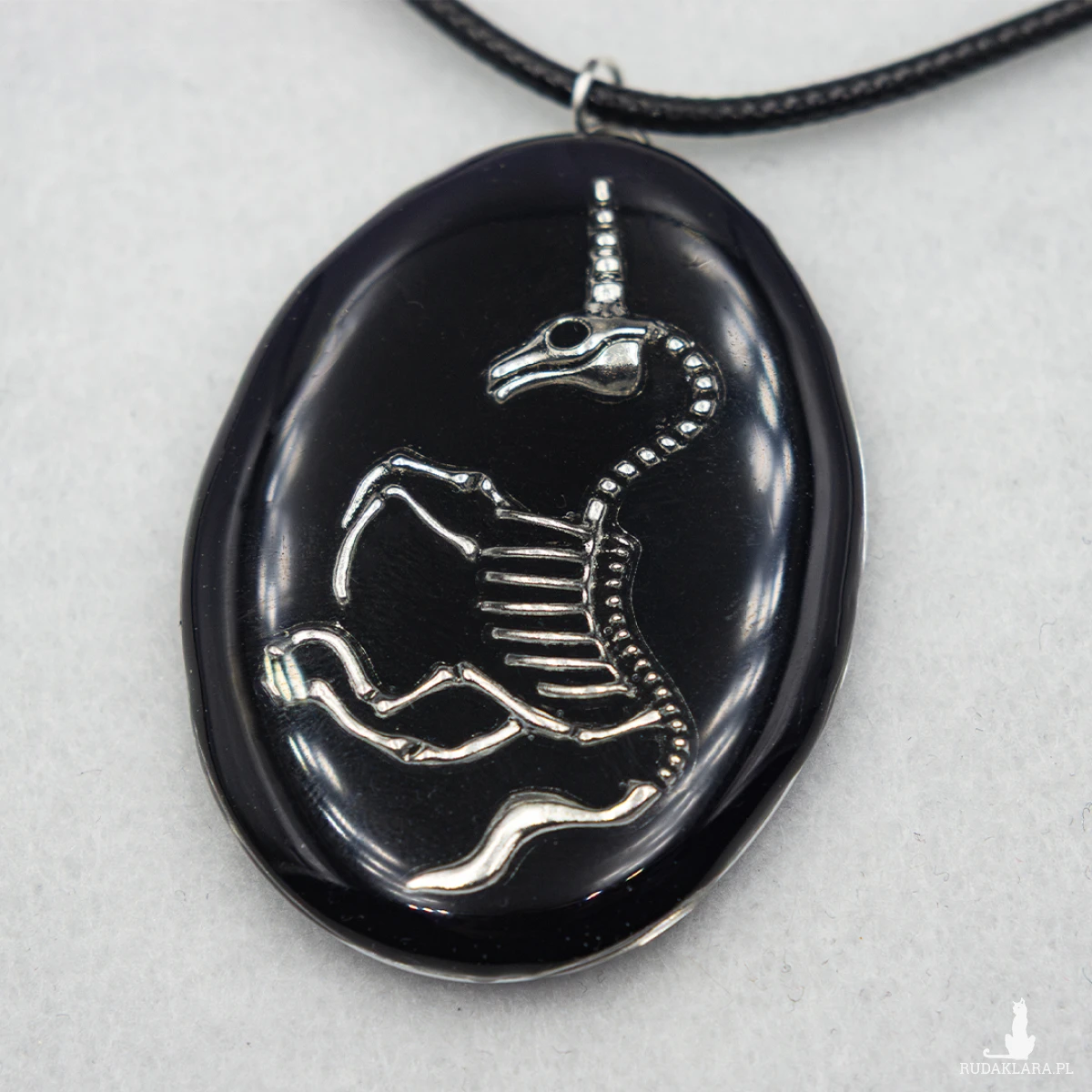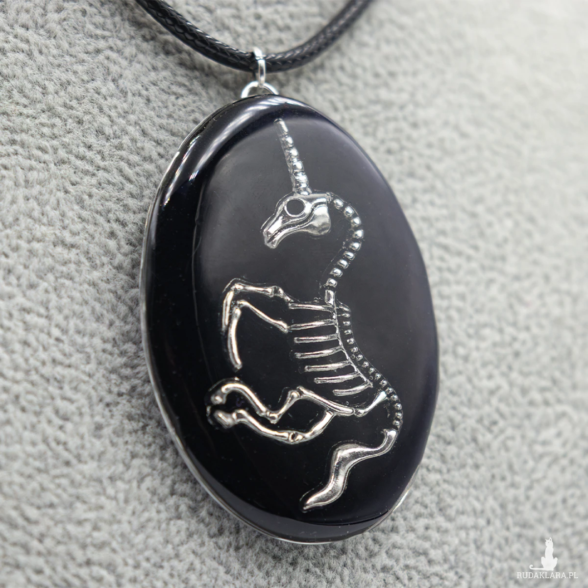 wykonany przeze mnie unikalny wisiorek z jednorożcem w klasycznym gotyckim stylu, dla wszystkich fanów "czarnej sceny". Należę do niej od blisko 30 lat i dlatego tworzę biżuterię, która może wydawać się mniej "gotycka" niż inne wzory, tzn. mniej wizualnie wybujała, ale skierowana jest przede wszystkim do tych, którzy cenią sobie subtelność bez utraty podstawowych gotyckich cech.