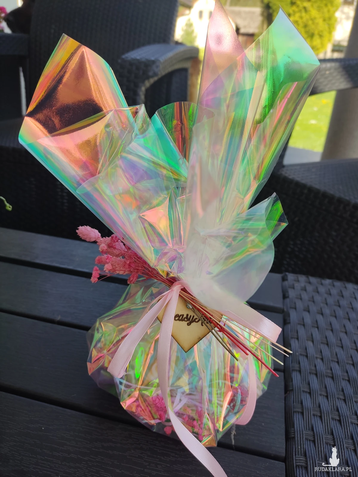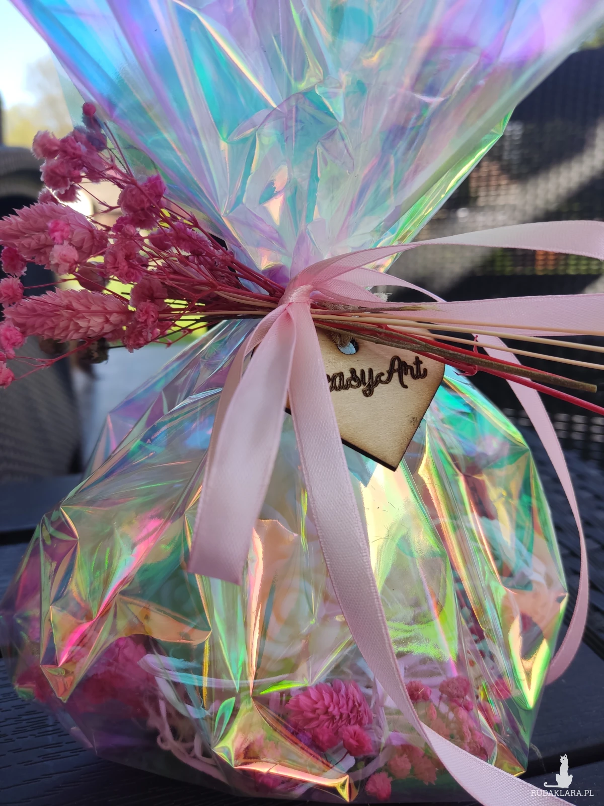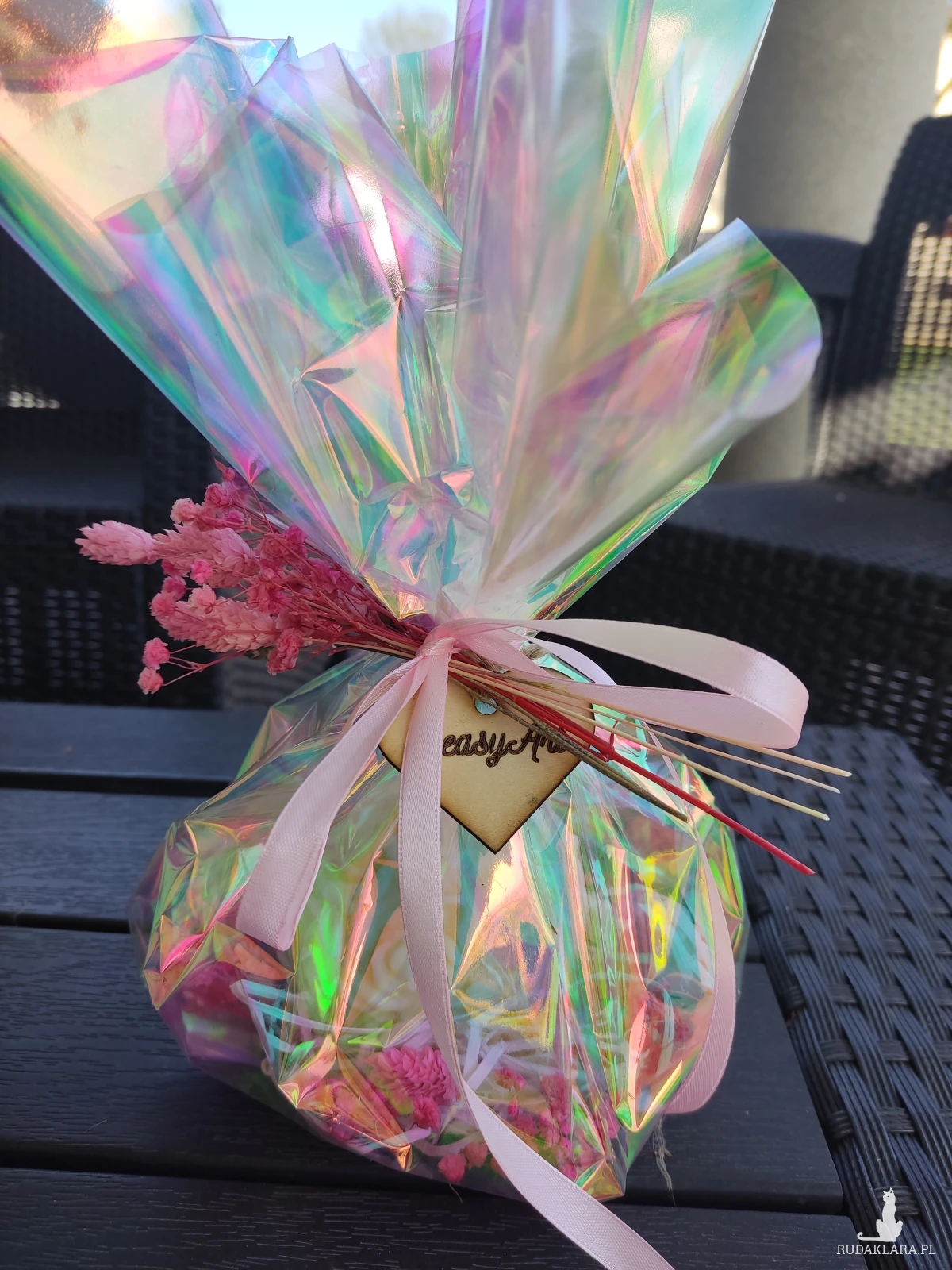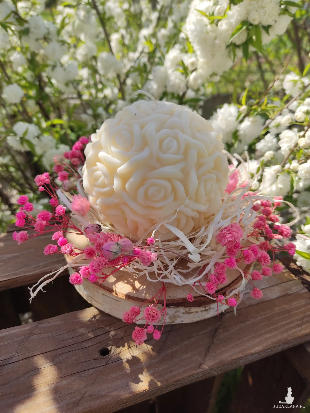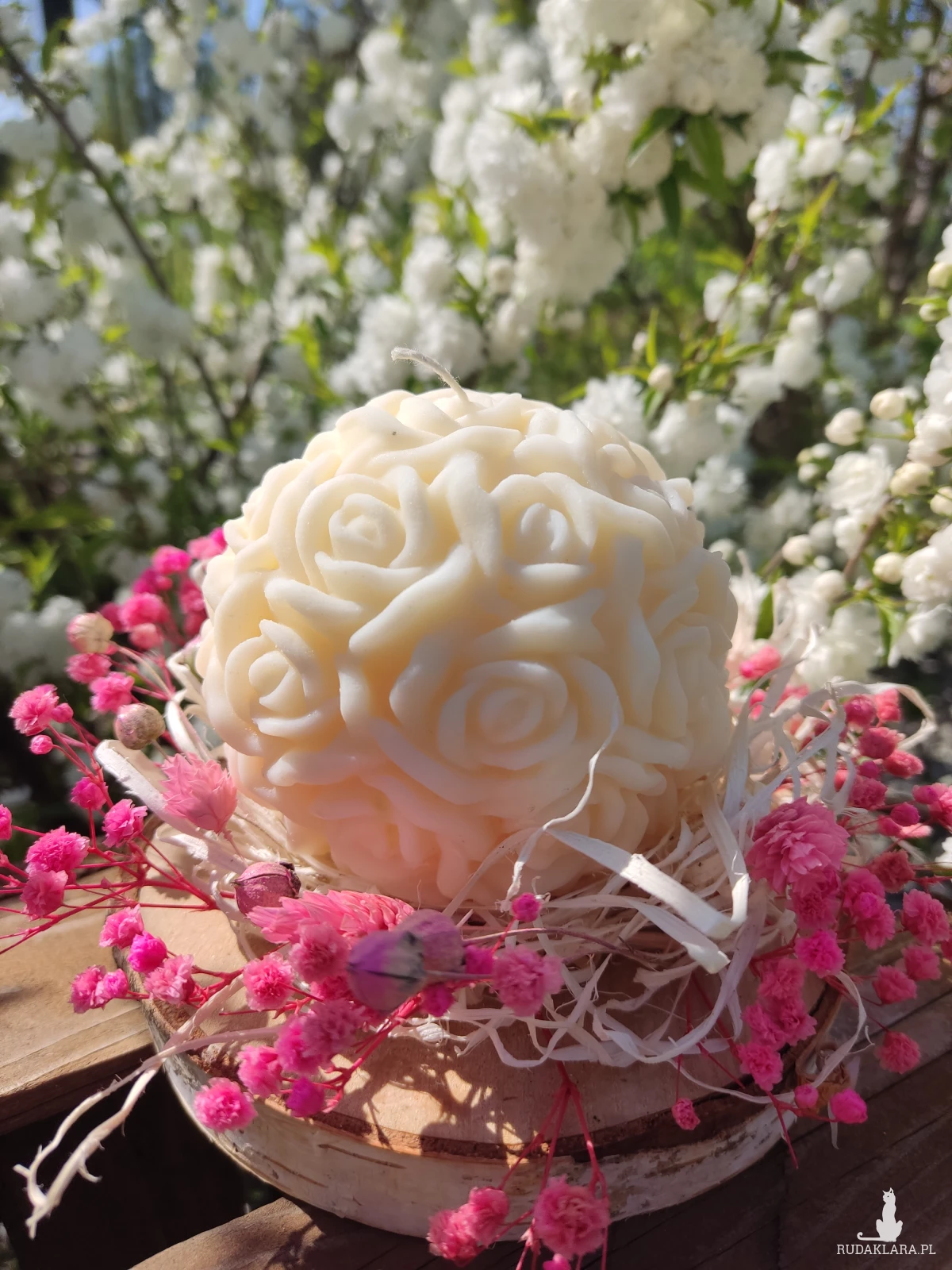 Świeca została dekoracyjnie zapakowana zostały starannie dobrane suszone kwiaty i inne dodatki. Idealna na urodziny, rocznice, ślub, walentynki, dzień kobiet, chrzest, komunię czy jako podziękowanie, łączy piękno natury z delikatnym aromatem, tworząc niezapomniane wrażenia.