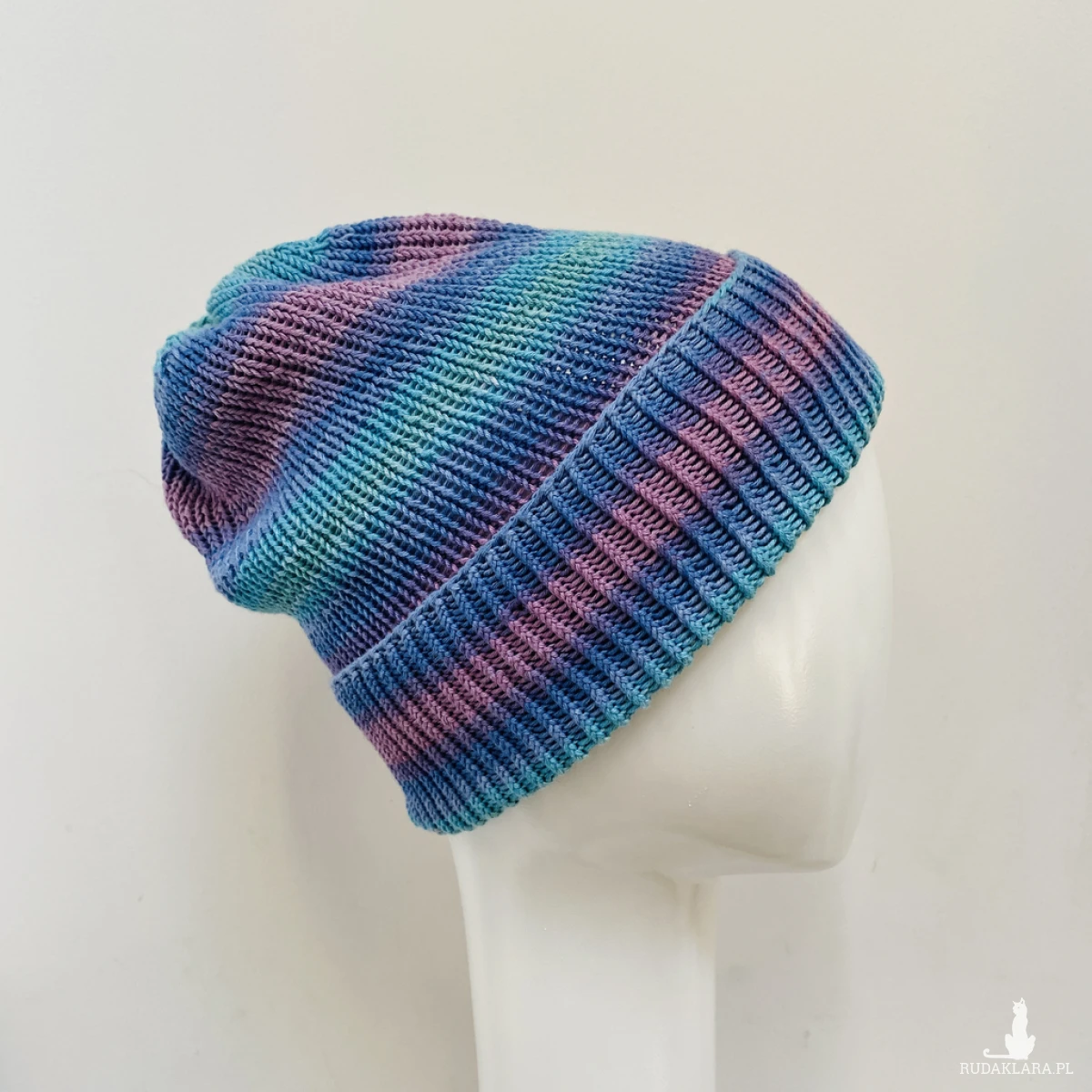 Czapkę wykonałam na drutach z miękkiej włóczki bawełnianej, która zapewnia wygodę noszenia przez cały dzień.