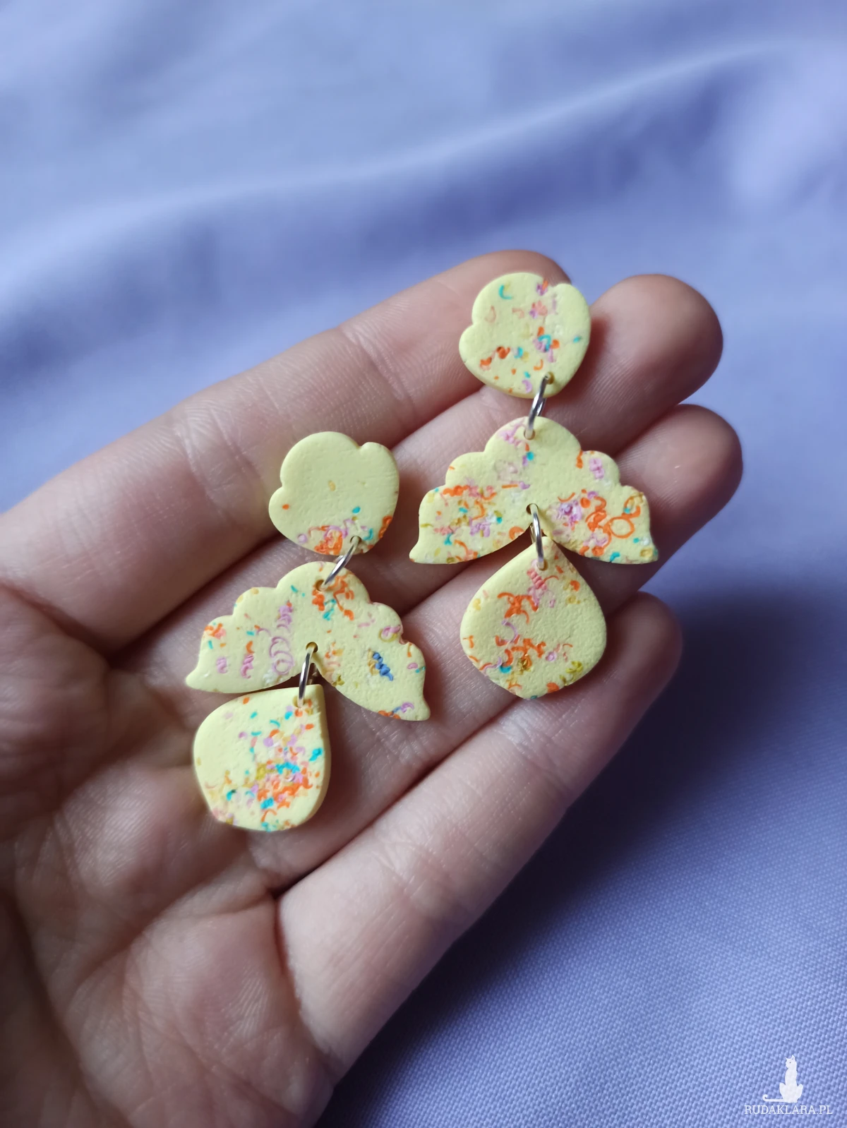 Kolczyki wykonane są z gliny polimerowej, która jest bardzo lekka. Sprawia to, że nie czuje się ich na uchu.