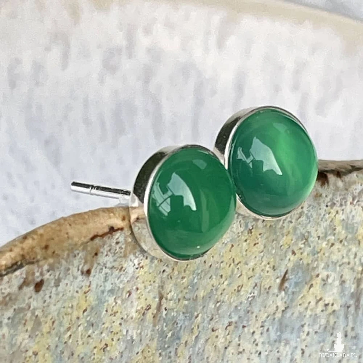 Sztyfty z agatem należą do kolekcji „Drobinki”, w skład której wchodzą minimalistyczne kolczyki z kamieniami oprawionymi w srebro. Kolczyki dodadzą stylizacjom dyskretnej elegancji oraz koloru, a za sprawą swojego małego rozmiaru nie będą rzucać się w oczy. Srebro w procesie tworzenia kolczyków było polerowane, dzięki czemu lśni jasnym blaskiem. Doskonale sprawdzą się jako prezent dla bliskiej osoby, która lubi urozmaicać swoje stylizacje ręcznie tworzoną biżuterią. Do sztyftów dołączone są baranki zabezpieczające kolczyki przed zgubieniem.