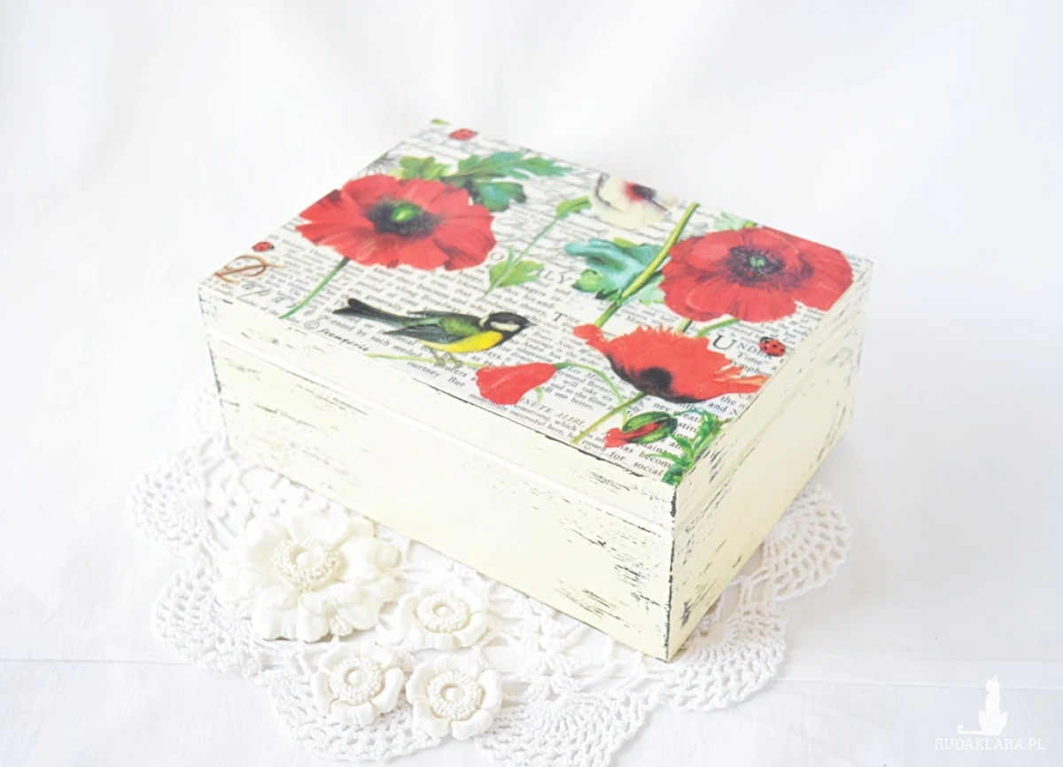 Drewniane pudełko zdobione ręcznie techniką decoupage – metoda serwetkowa