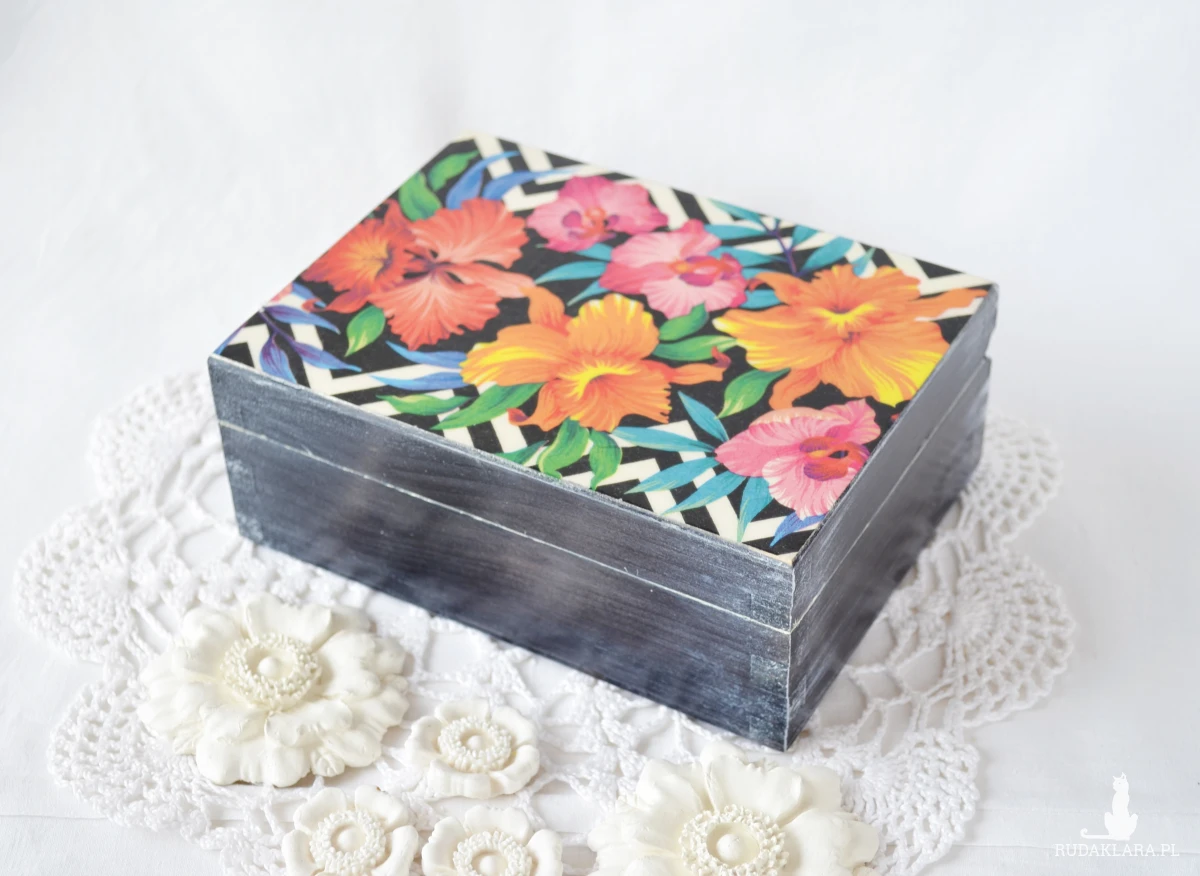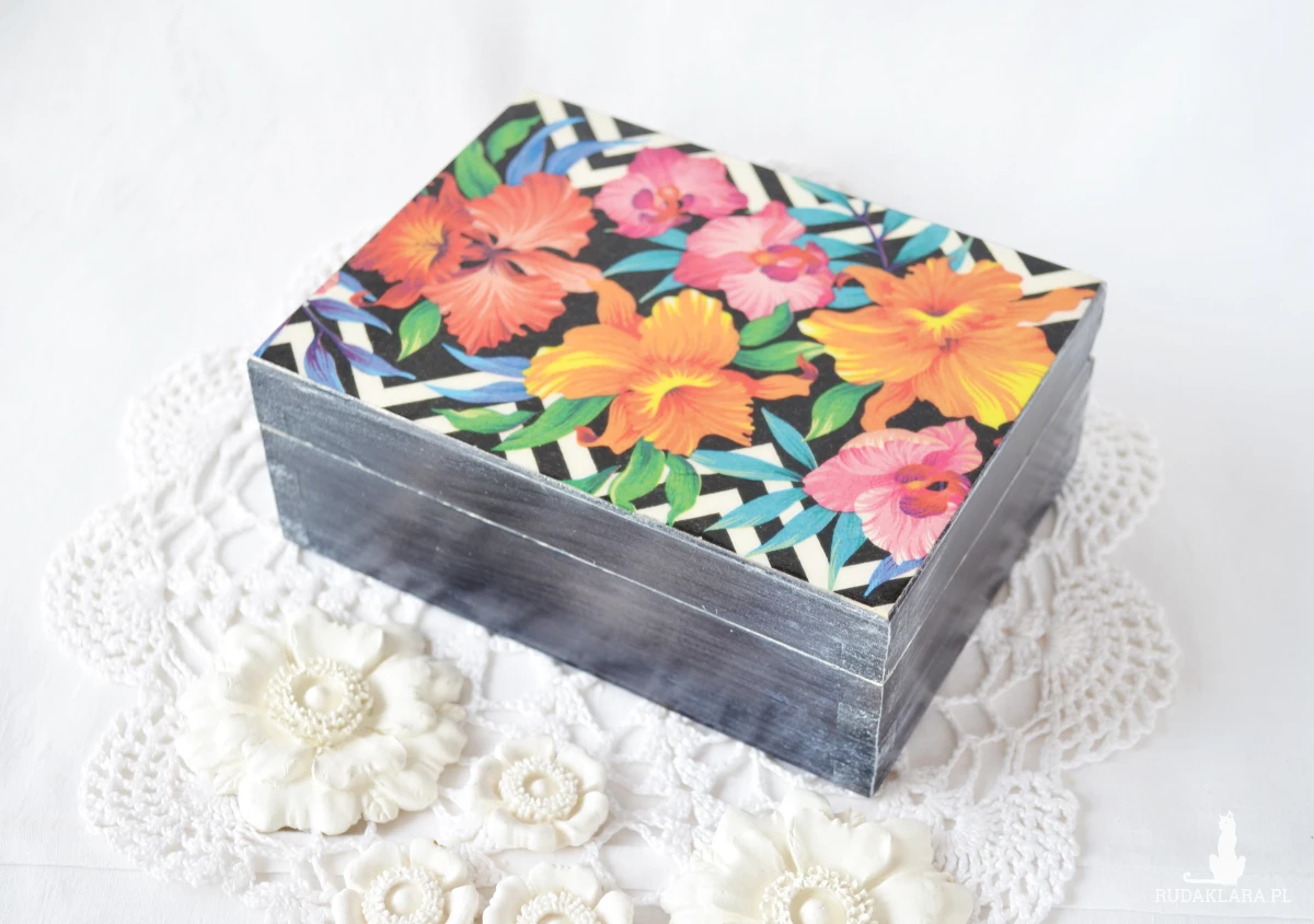Drewniane pudełko zdobione ręcznie techniką decoupage – metoda serwetkowa
