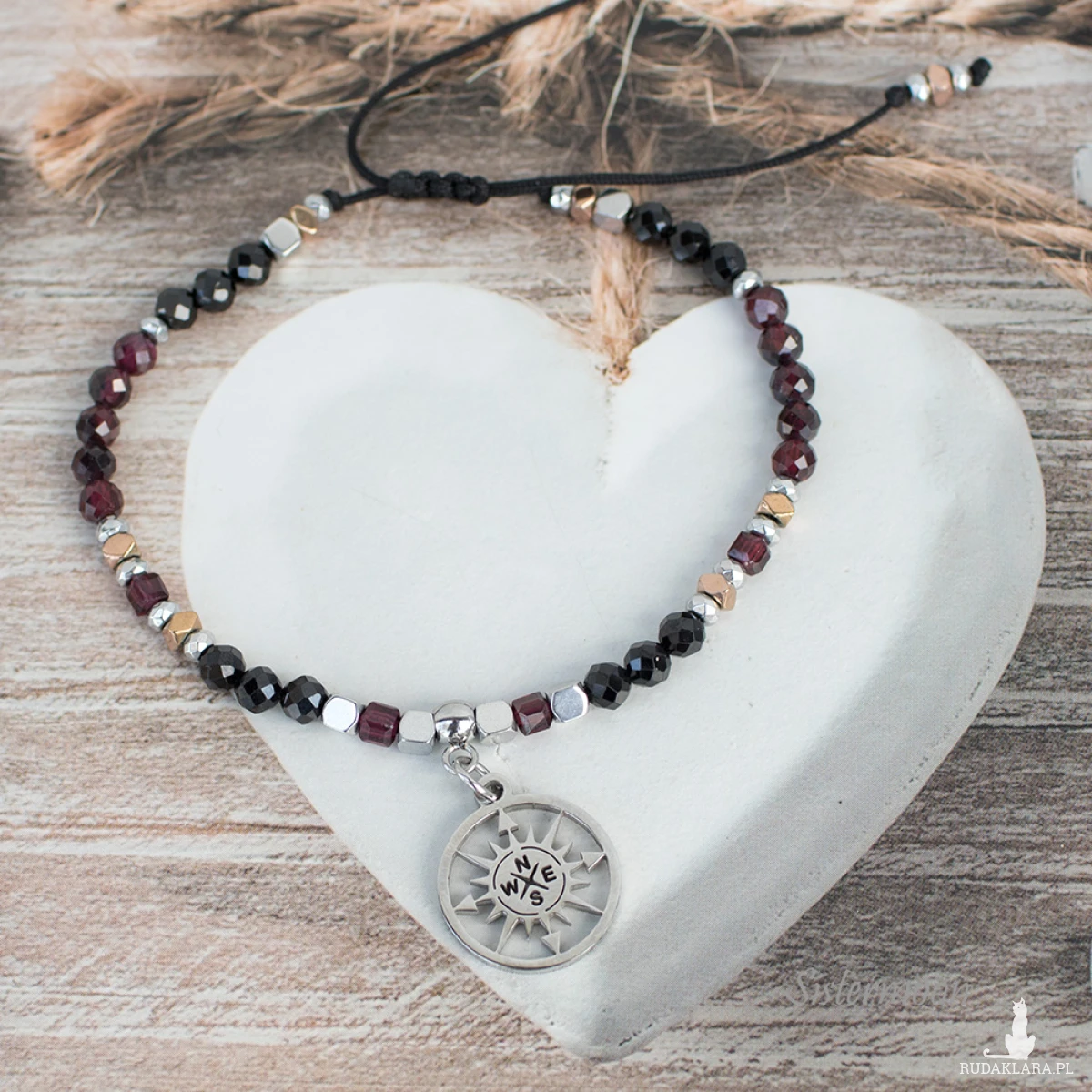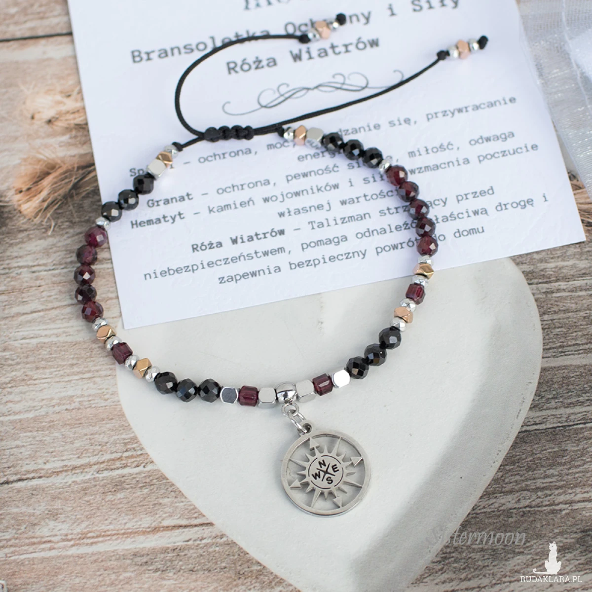 Bransoletka Ochrony i Siły Spinel i Granat wykonana ręcznie ze starannie wyselekcjonowanych minerałów o średnicy 2, 3 i 4 mm: fasetowane spinele i hematyty, kostki granatów, mocny nierozciągliwy i nieblaknący cienki sznureczek z przesuwnym zapięciem makramowym. Pasuje na nadgarstek o obwodzie 16-19 cm. Jeśli potrzebny inny rozmiar, napisz!