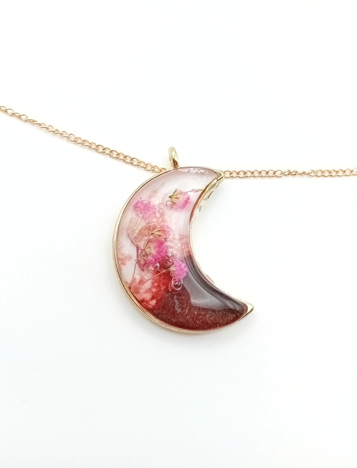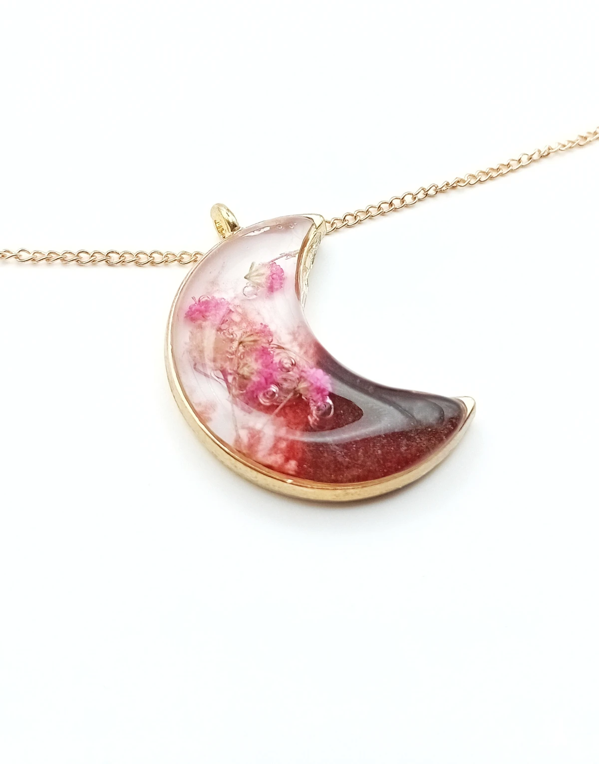 #WisiorekZRęki #BiżuteriaHandmade #RóżowaGipsówka #ŻywicaEpoksydowa #StylINatura #KsiężycowyWisiorek #PrezentDlaNiej #MagiaBiżuterii #BohoBiżuteria #UnikalnyDodatek #BiżuteriaZRękodzieła