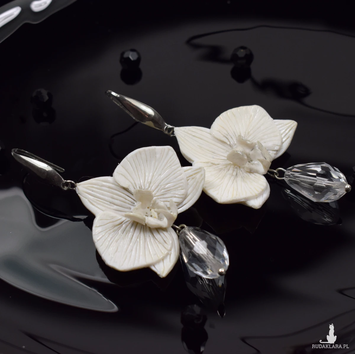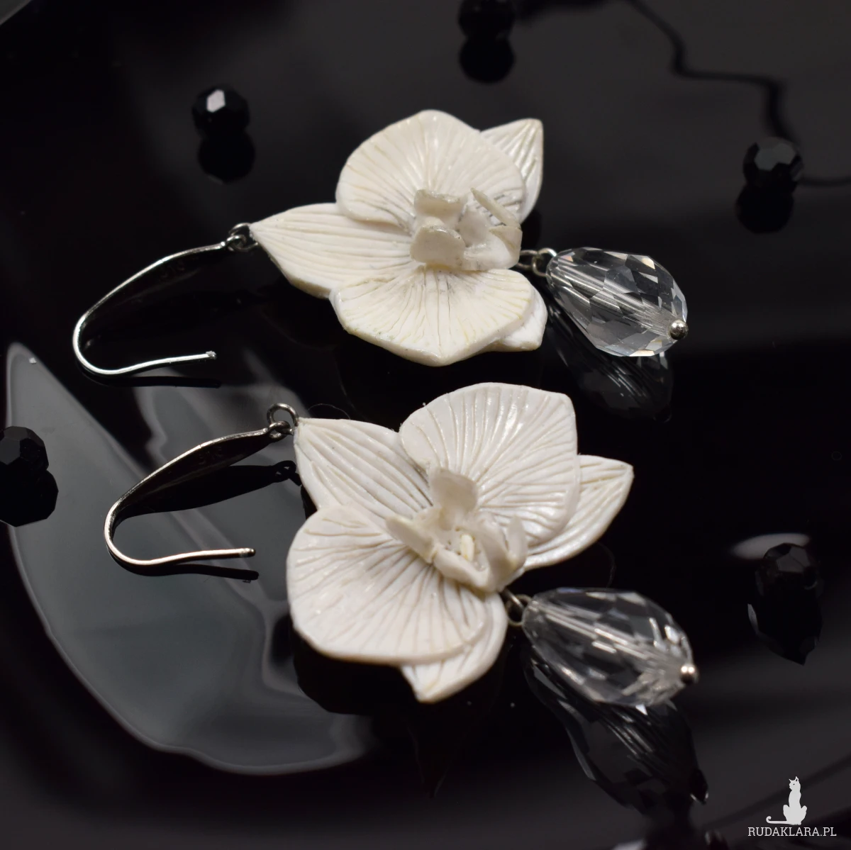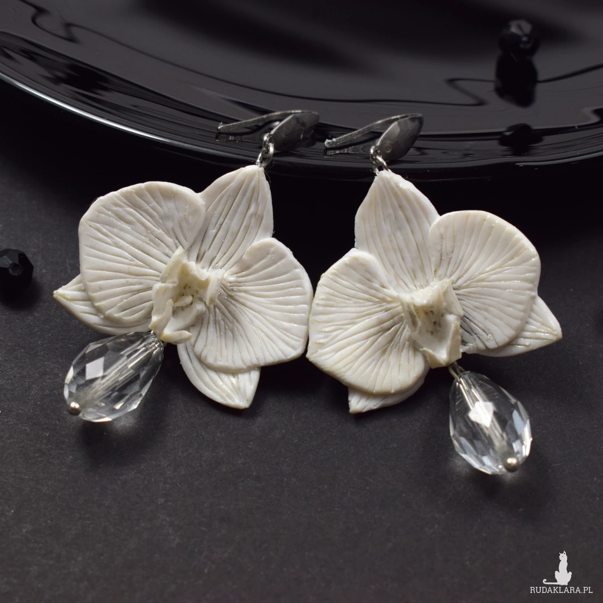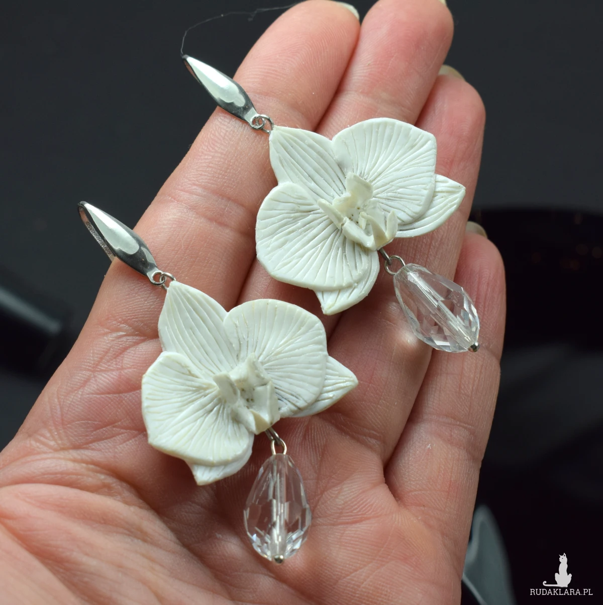 Eleganckie kolczyki z kwiatami orchidei, w kolorze bieli i dodatkiem
