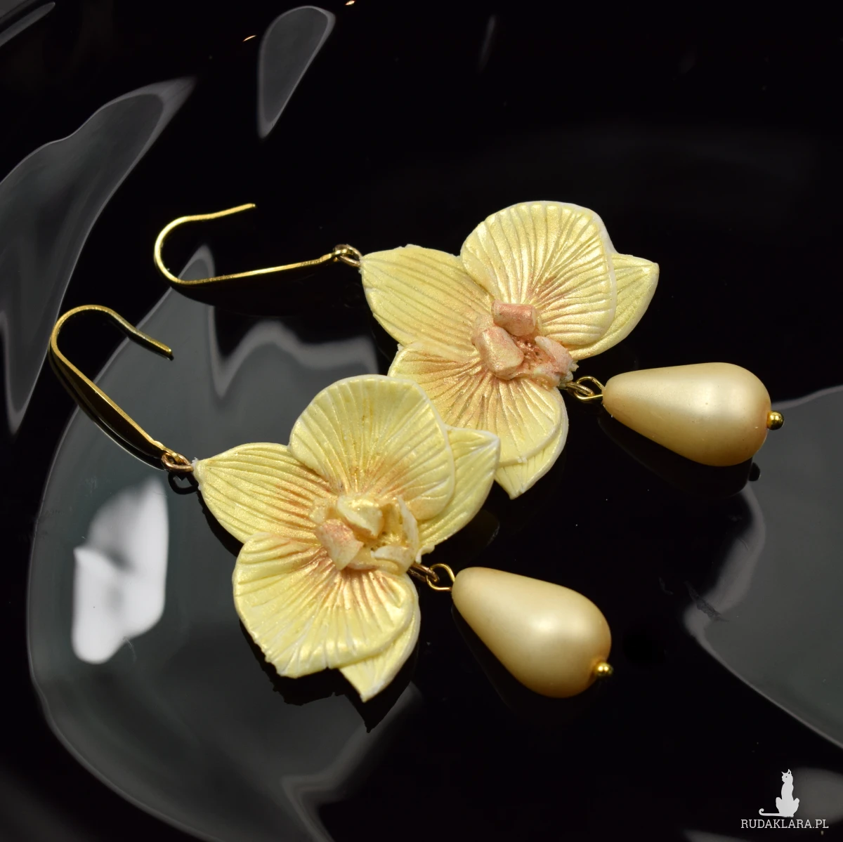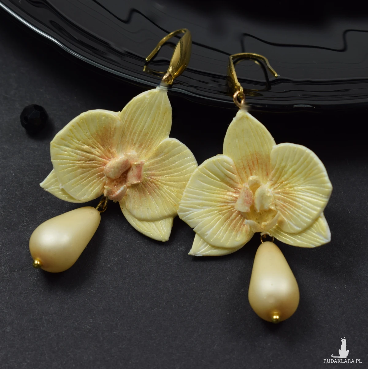Eleganckie kolczyki z kwiatami orchidei, w delikatnym odcieniu