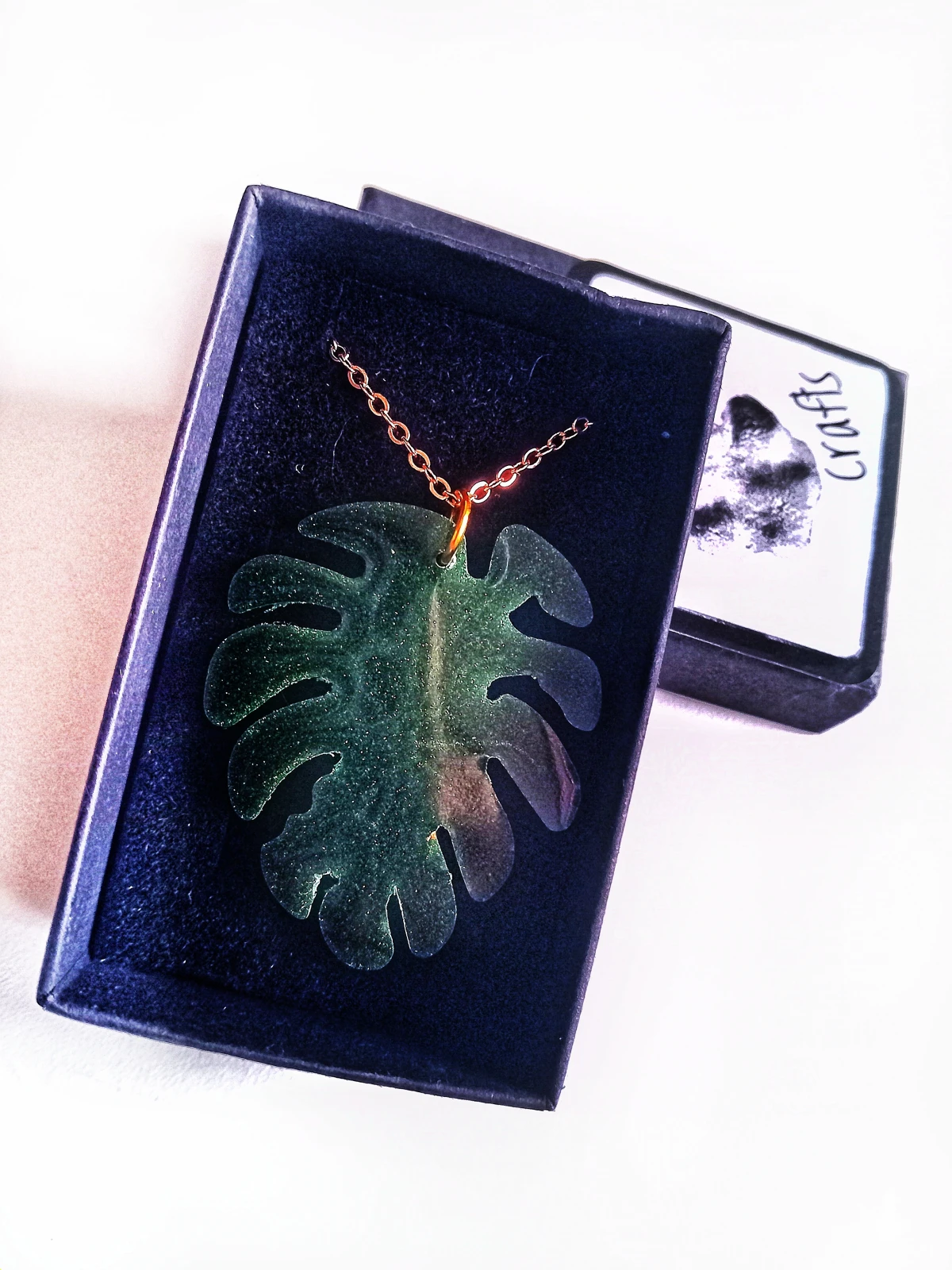 #WisiorZŻywicy #BiżuteriaHandmade #LiśćMonstery #StylBoho #NaturalnaBiżuteria #PrezentZRękodzieła #UnikalnyDodatek #RękodziełoPolskie #PerłowaŻywica #EcoDesign #BiżuteriaZRęki #NatureInspiredJewelry