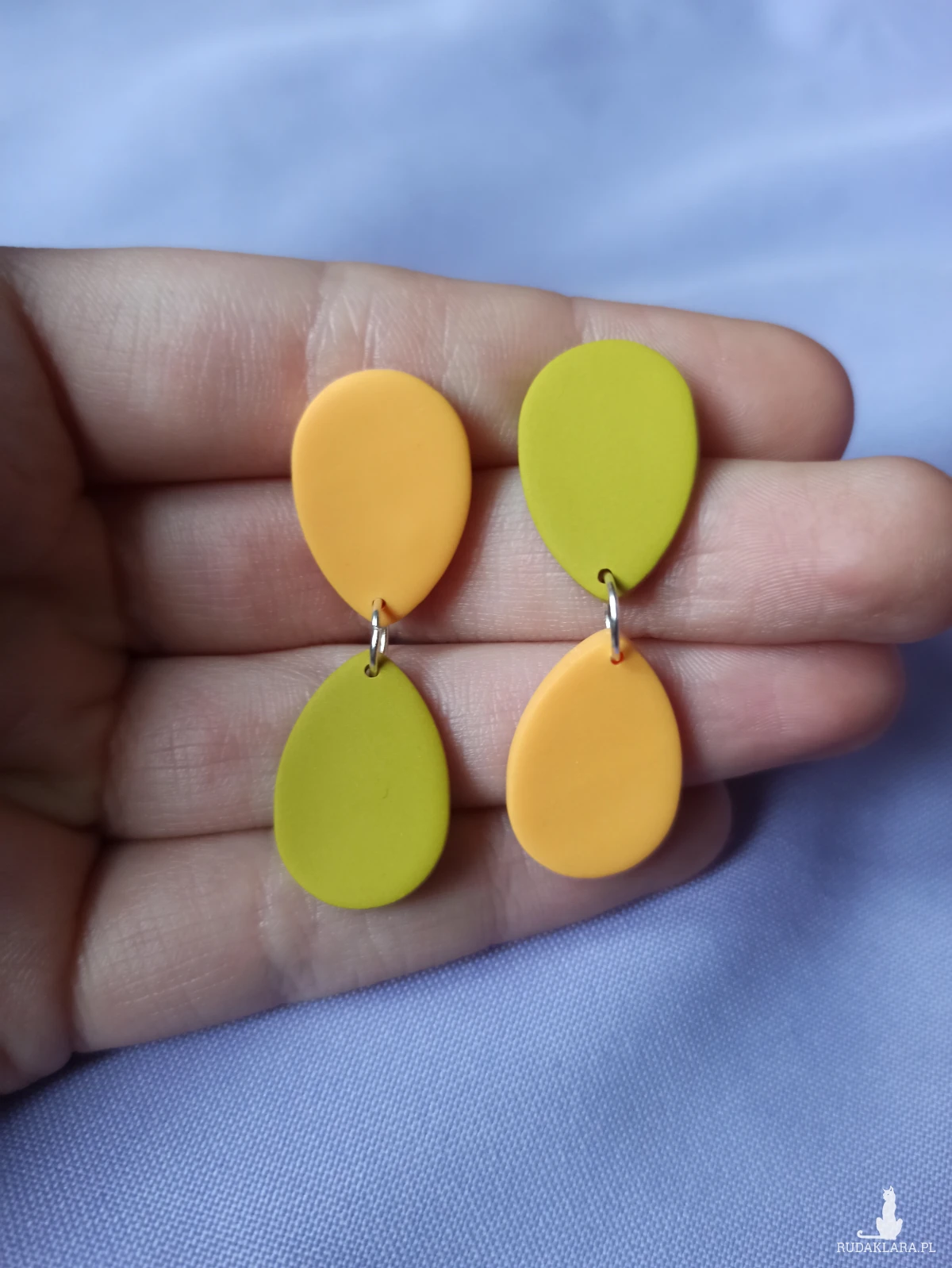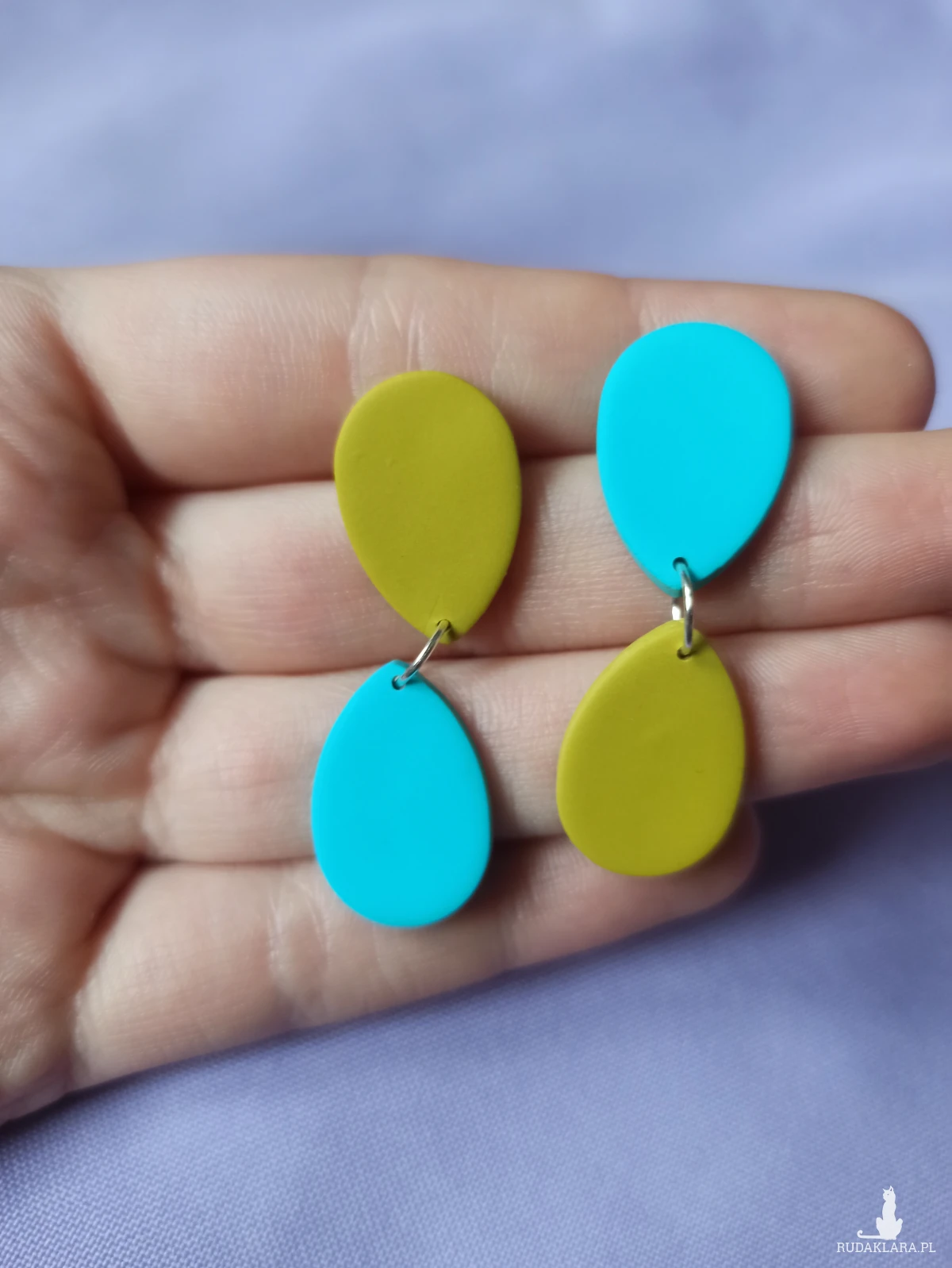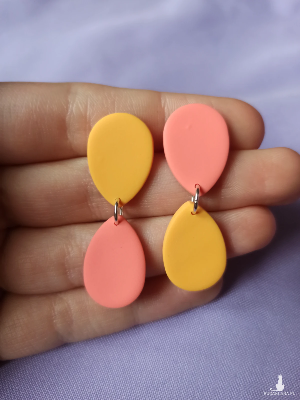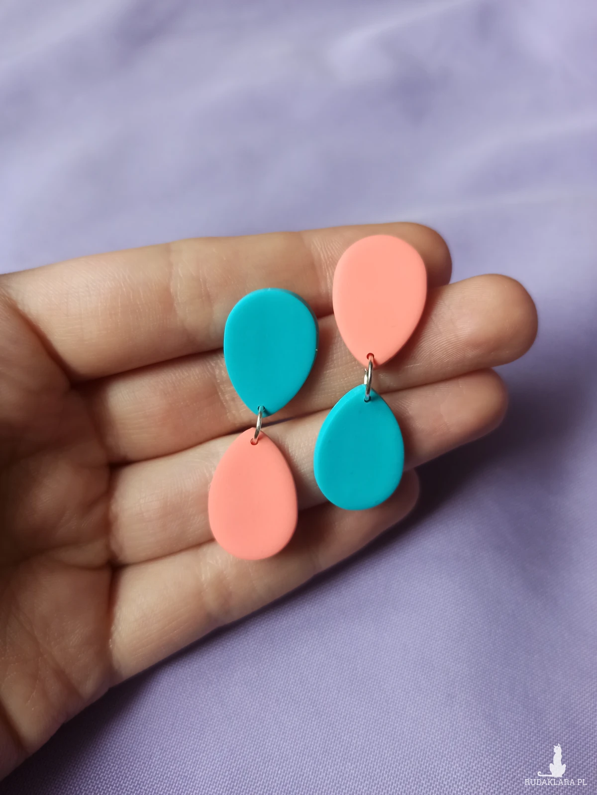 Kolczyki wykonane są z gliny polimerowej, która jest bardzo lekka. Sprawia to, że nie czuje się ich na uchu.