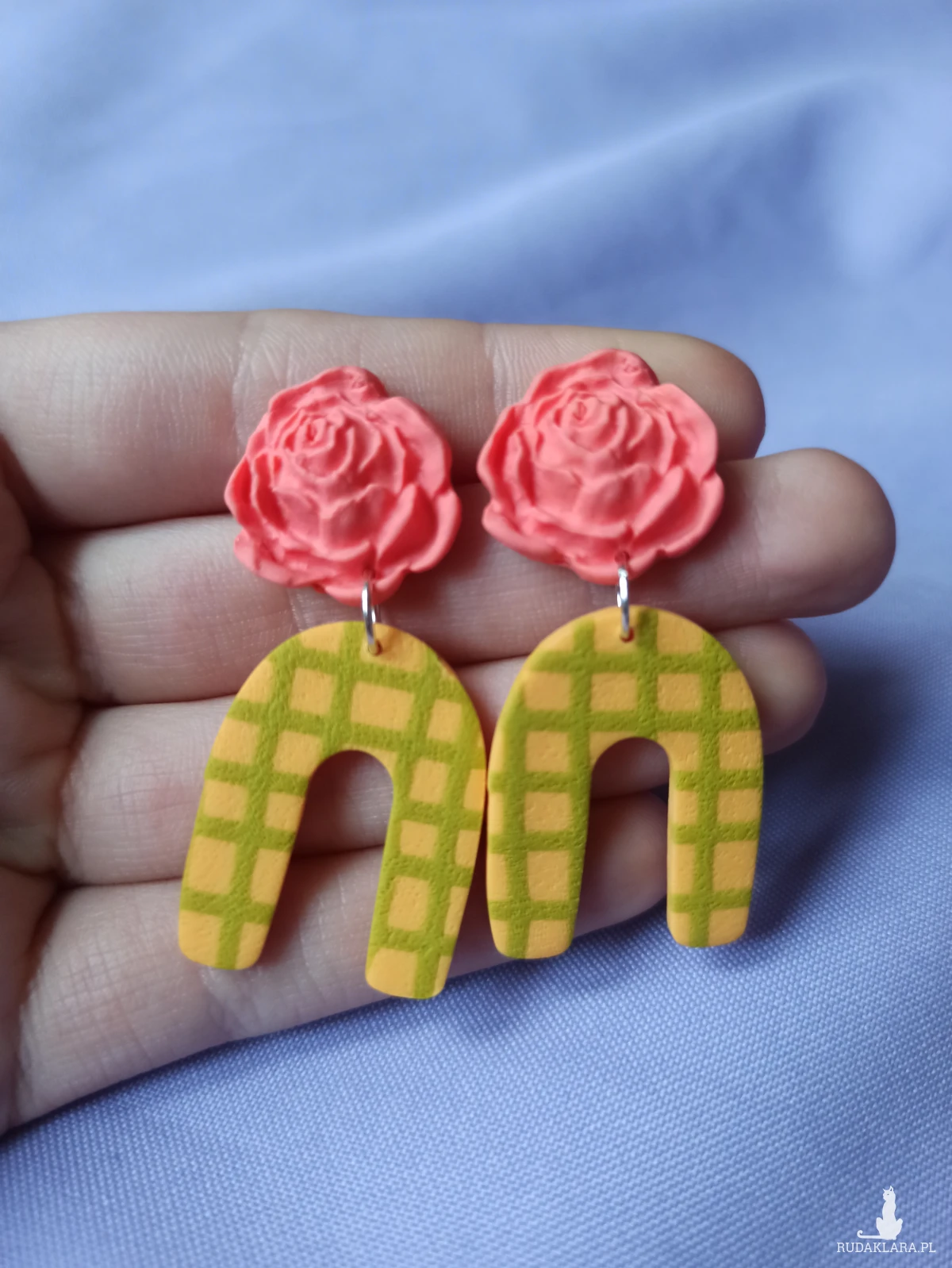 Kolczyki wykonane są z gliny polimerowej, która jest bardzo lekka. Sprawia to, że nie czuje się ich na uchu.