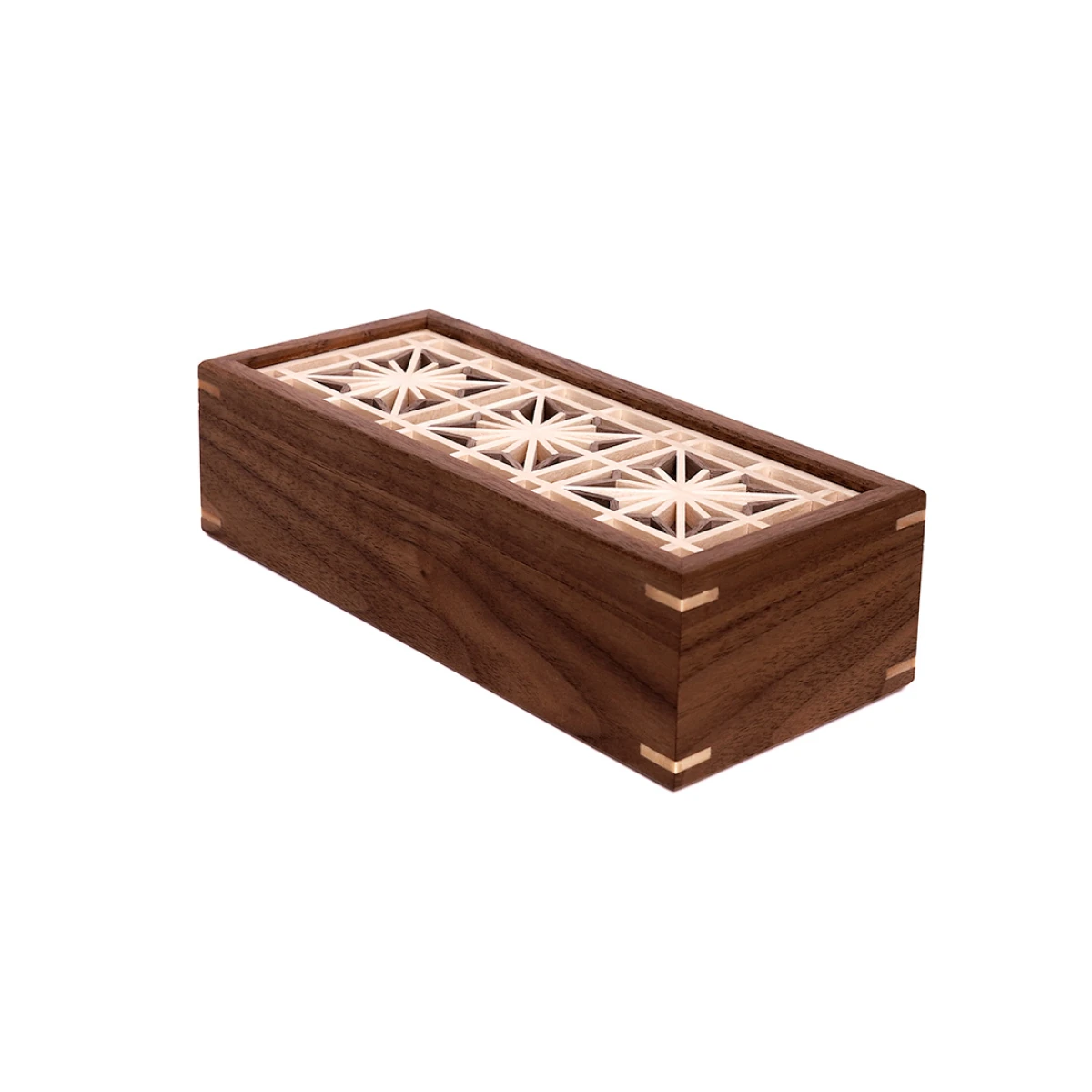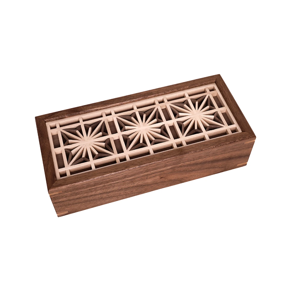 Szkatułka na biżuterię drewniana z wzorem Kumiko Asa no ha, prostokątna