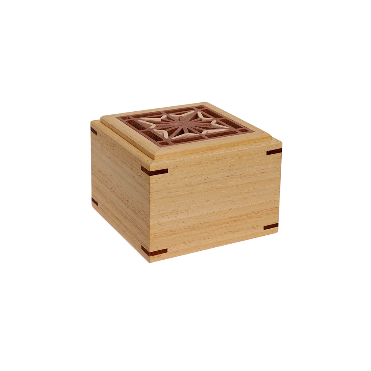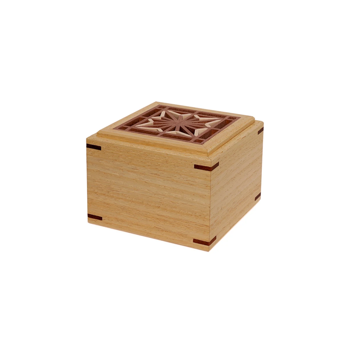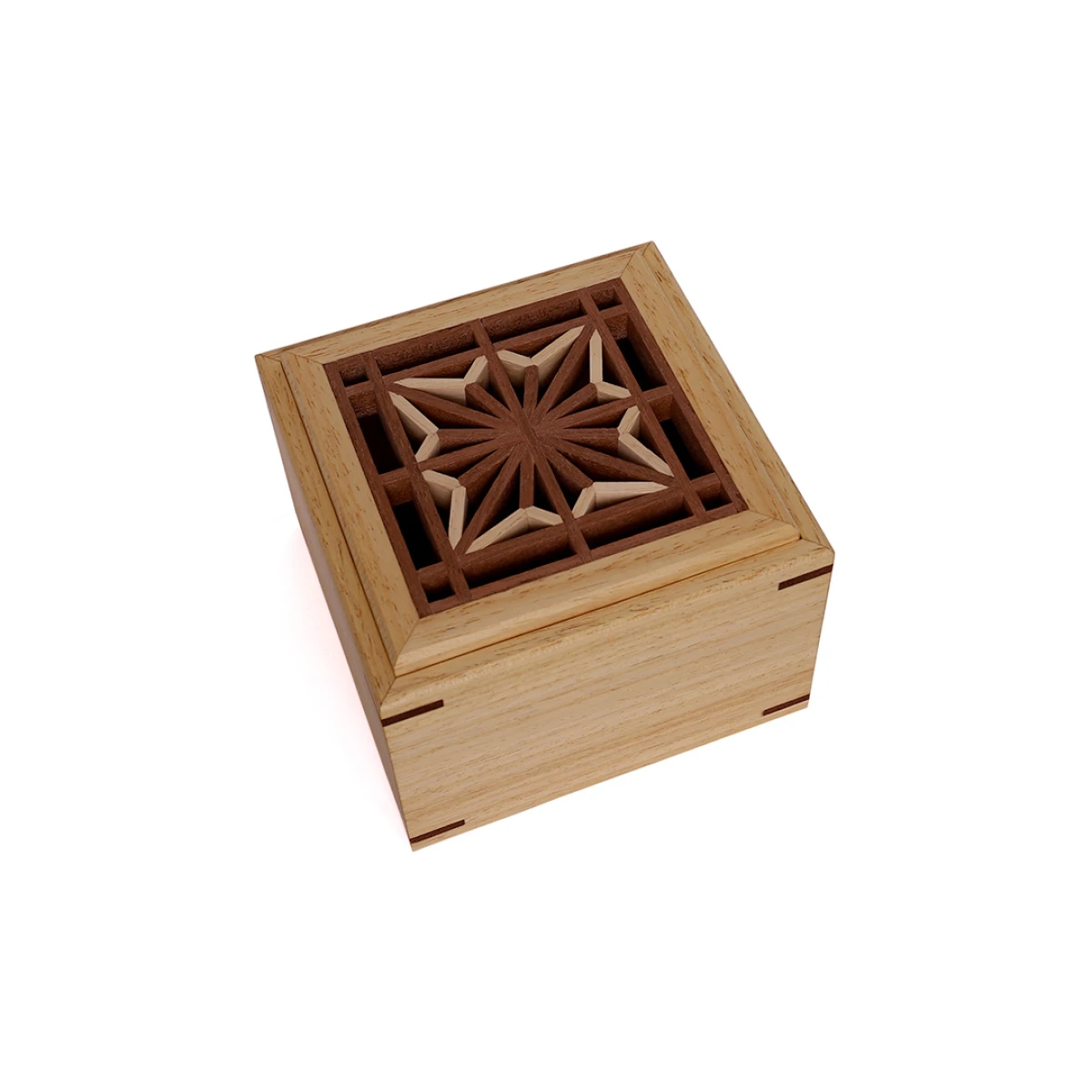Szkatułka na biżuterię drewniana z wzorem Kumiko Asa no ha, czworokątna, wariant light