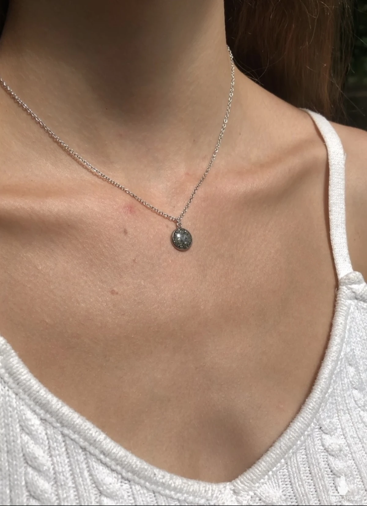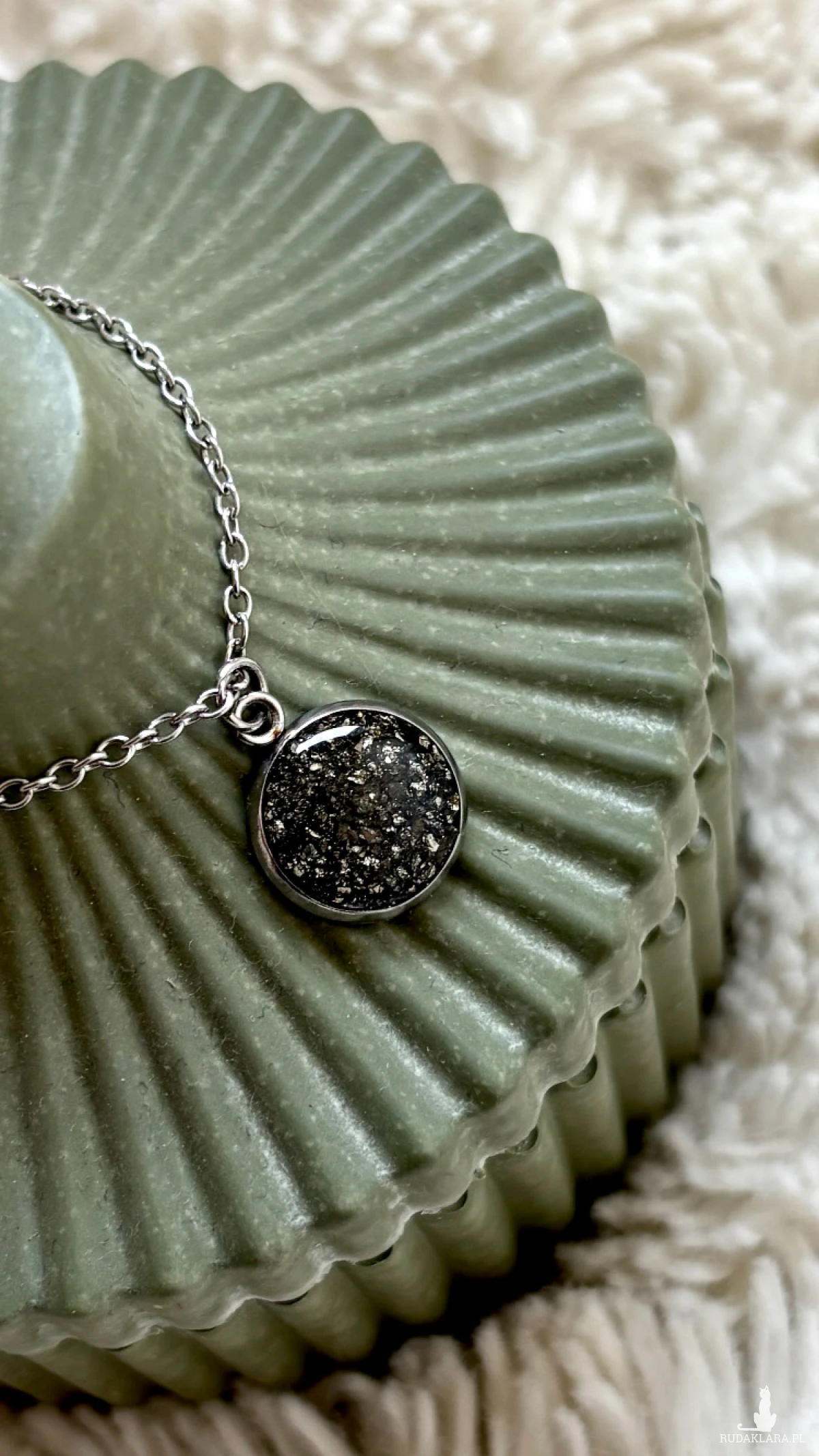Ostrzeżenie o zagrożeniach: Biżuteria nie nadaje się do zabawy przez dzieci, ponieważ często zawiera małe elementy, albo wykończenia z drobnych kamieni, które dziecko może urwać, zniszczyć i się nimi zakrztusi. Stal chirurgiczna jest to surowiec hipoalergiczny. Choć może zawierać w składzie minimalną zawartością niklu, jest ona bezpieczna i nie wywołuje u większości objawów alergii. Instrukcja obsługi oraz postępowania, przechowywania, czyszczenia: Unikaj kontaktu z chemikaliami, takimi jak perfumy, kosmetyki czy środki czyszczące ponieważ mogą one uszkodzić żywicę. W przypadku dostania się nieporządanych substancji koniecznie przemyć wodą. Zdejmuj biżuterię przed kąpielą, spaniem czy wykonywaniem prac domowych, aby uniknąć przypadkowego uszkodzenia. Przechowuj ją w osobnym pudełku lub woreczku, aby uniknąć zarysowań i zaplątania się z inną biżuterią. Do zestawu dołączona została ściereczka, którą należy czyścić biżuterię. Co jakiś czas polecam przemyć sobie wodą samą zawieszkę z kamieniem w żywicy.