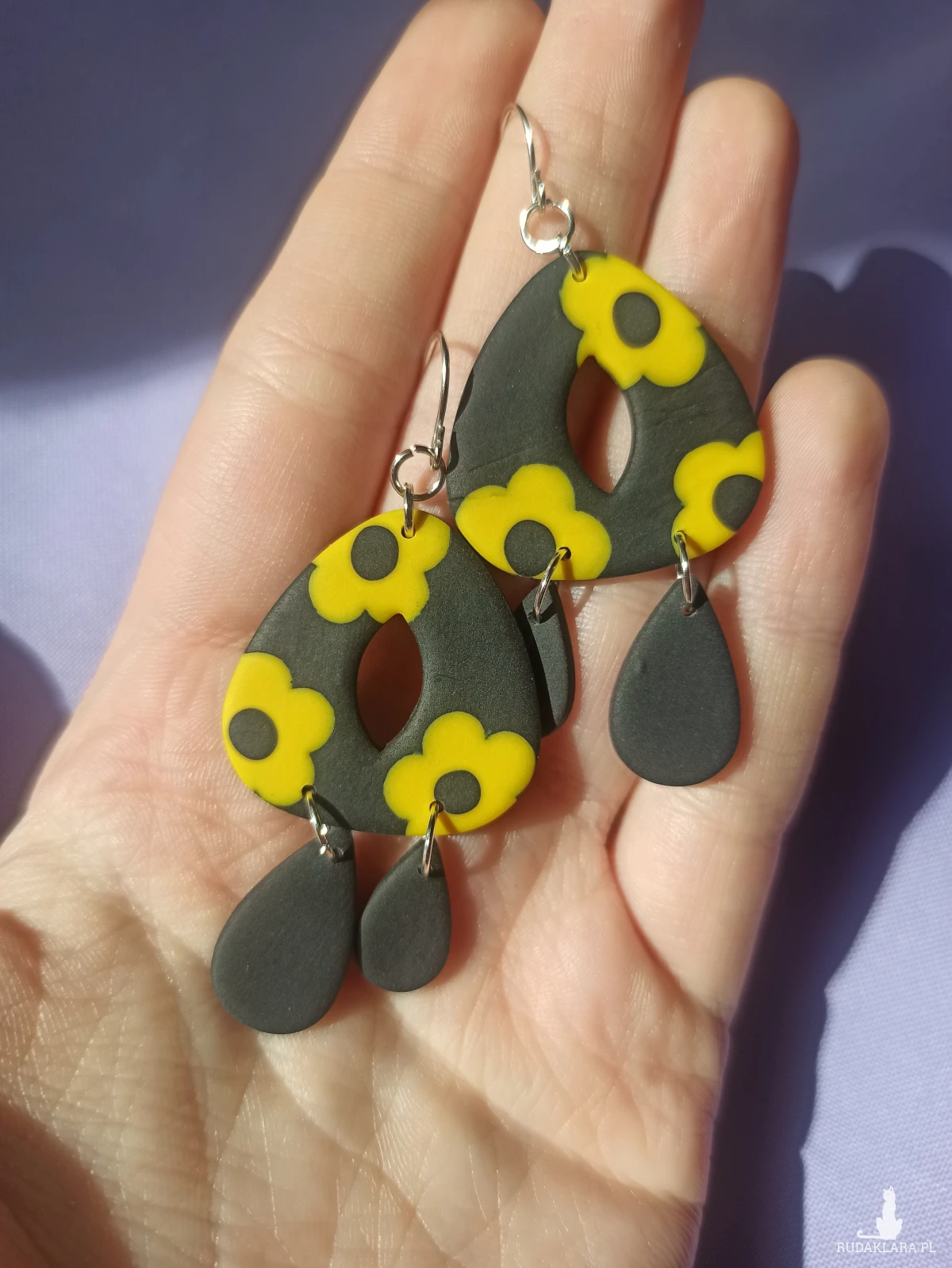 Kolczyki wykonane są z gliny polimerowej, która jest bardzo lekka. Sprawia to, że nie czuje się ich na uchu.