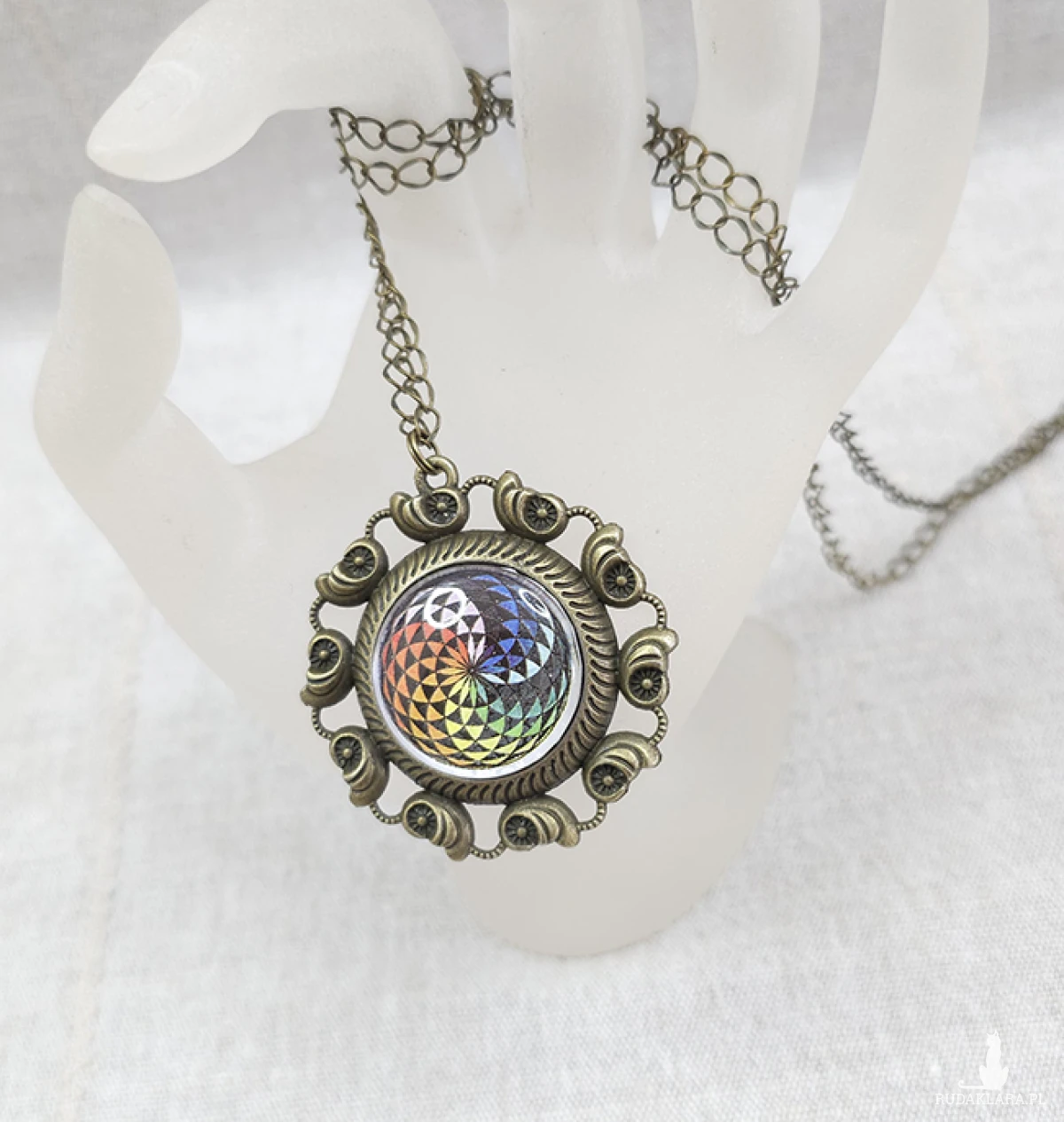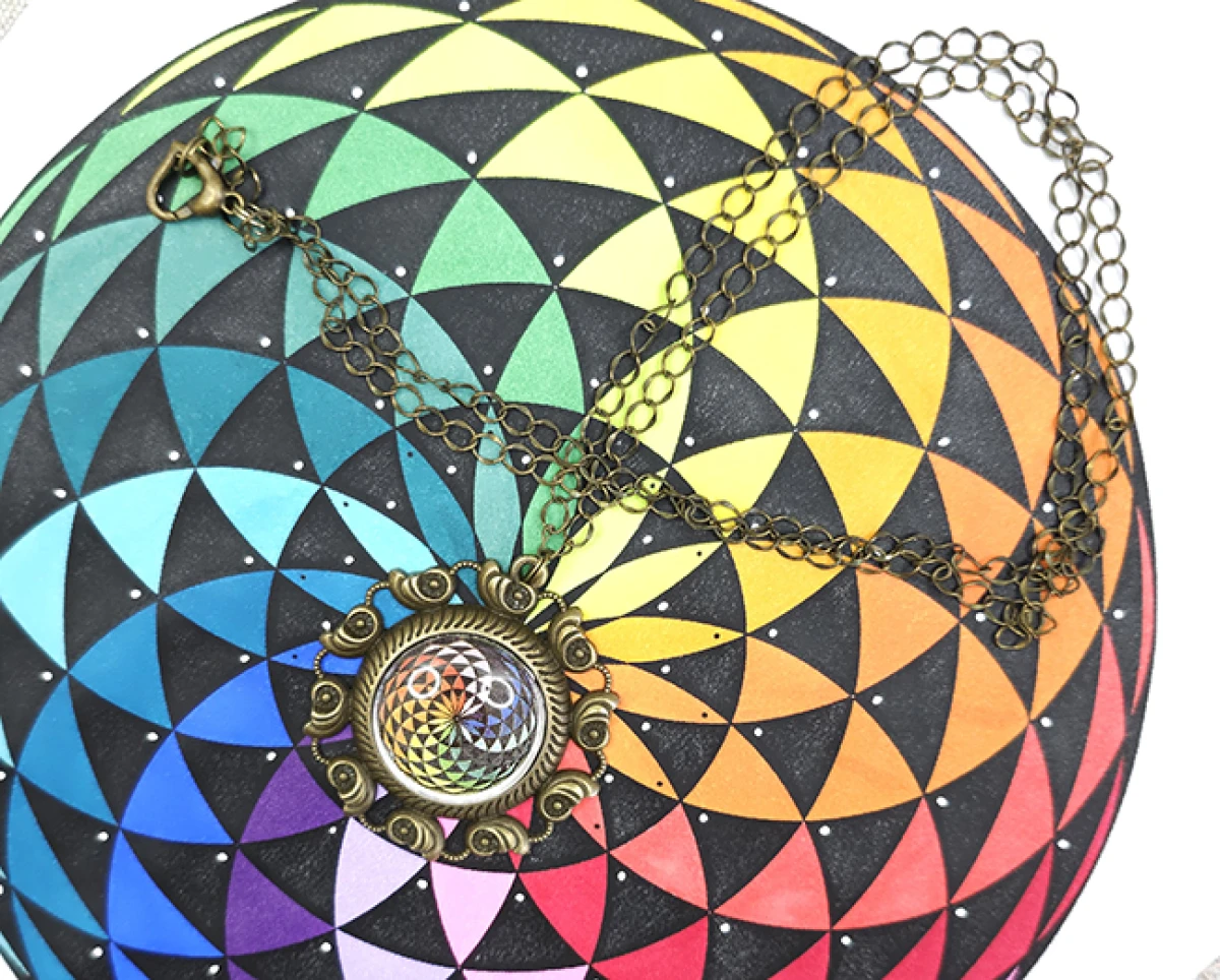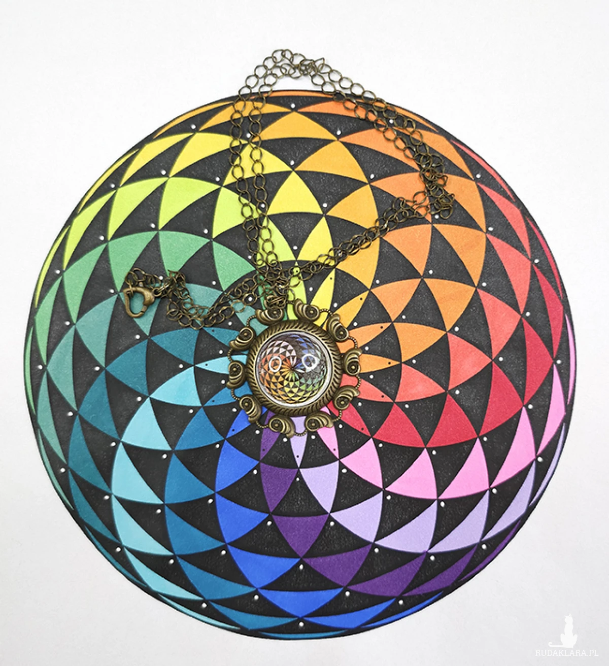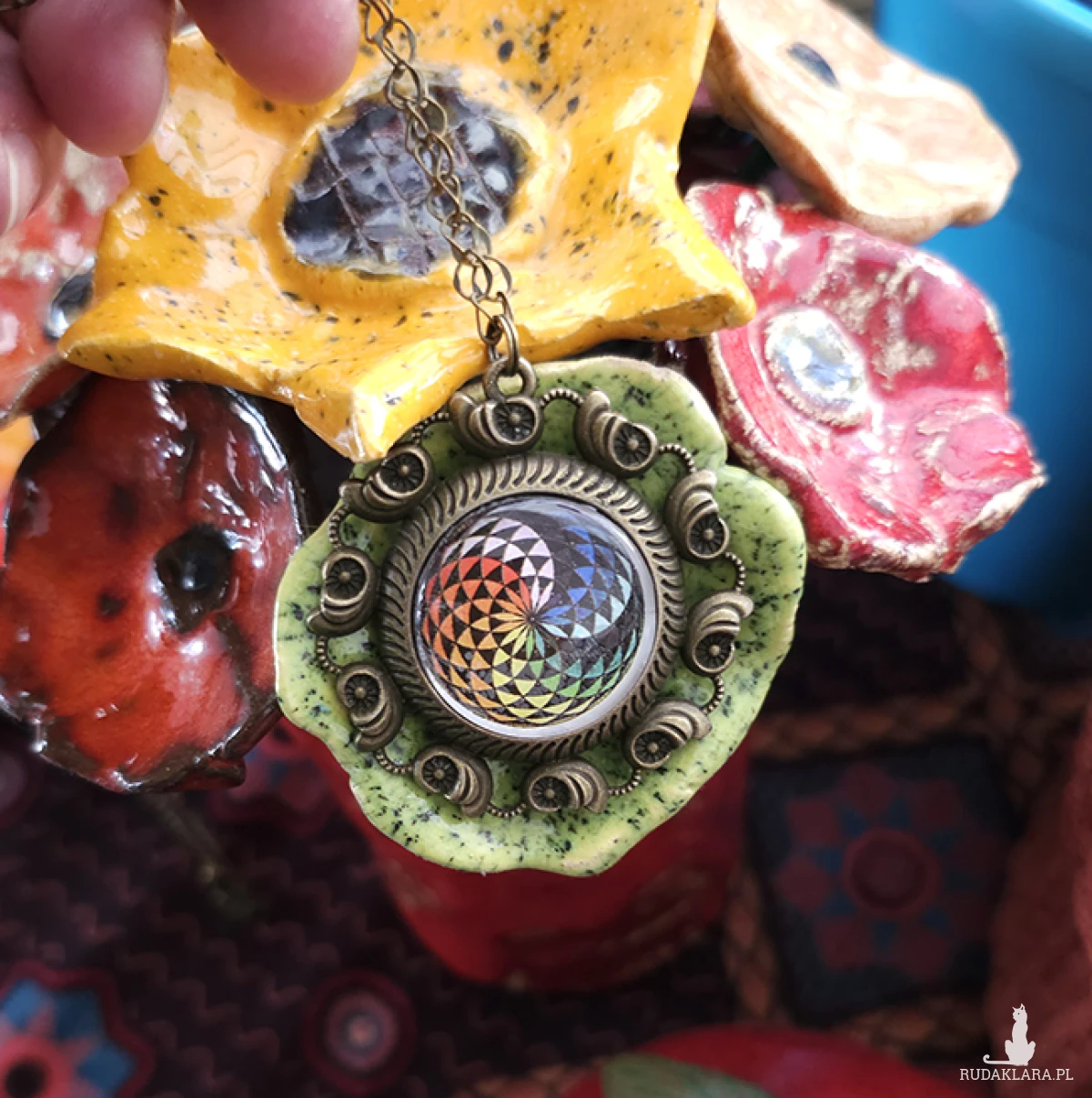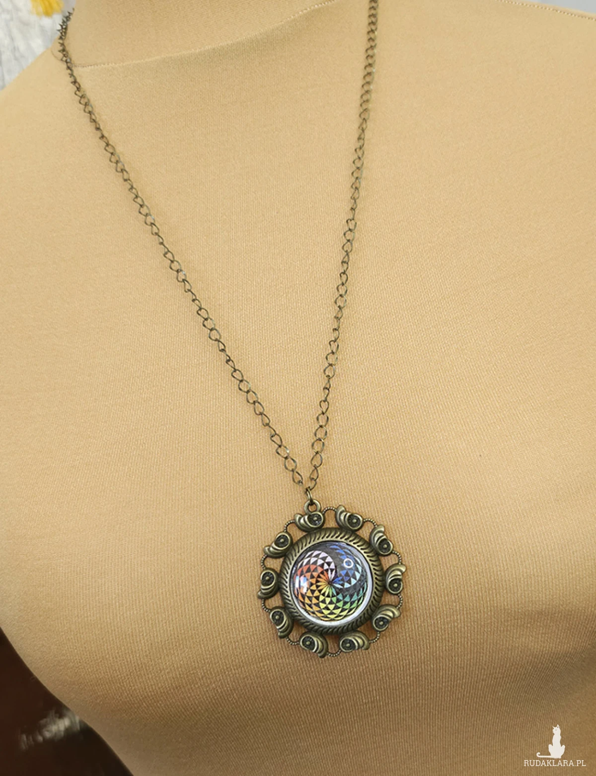 6739 długi naszyjnik z wisiorkiem; wisiorek mandala; kolorowa mandala
