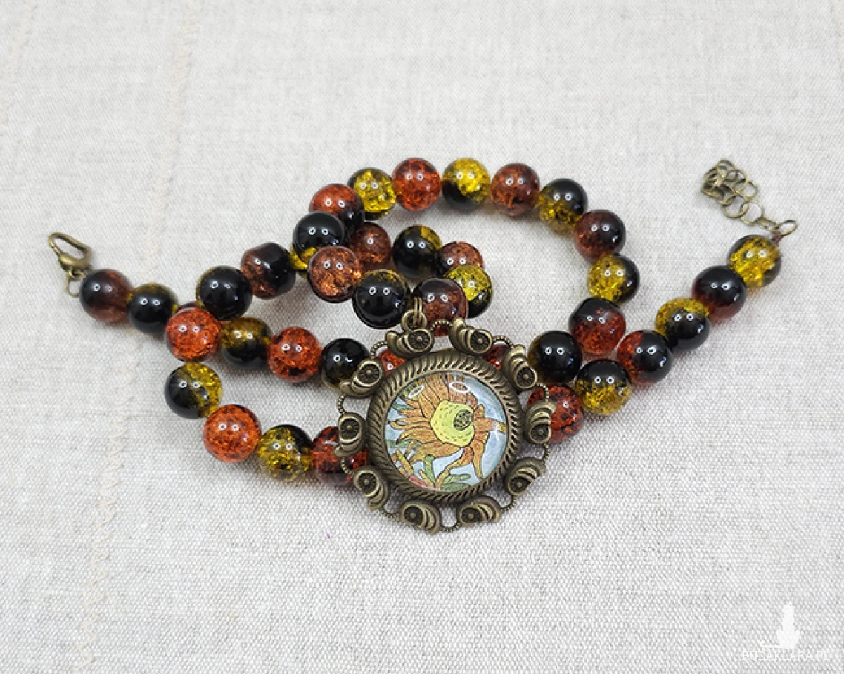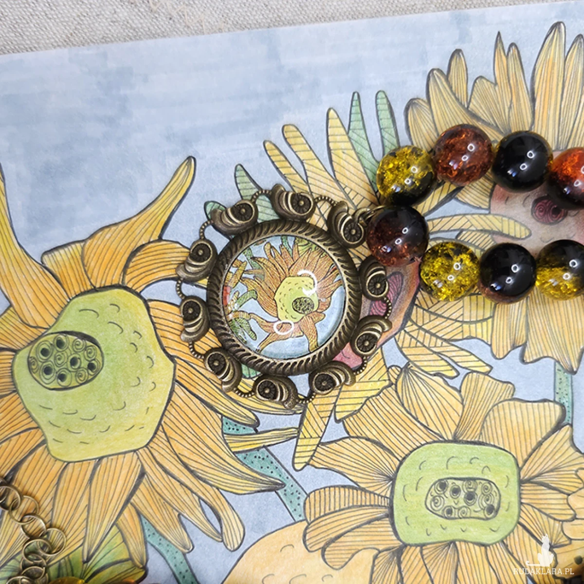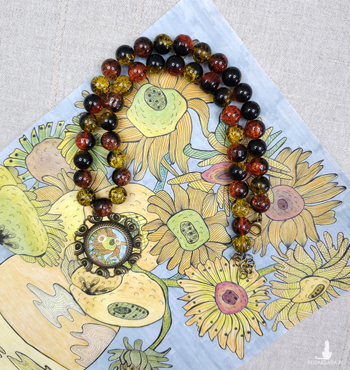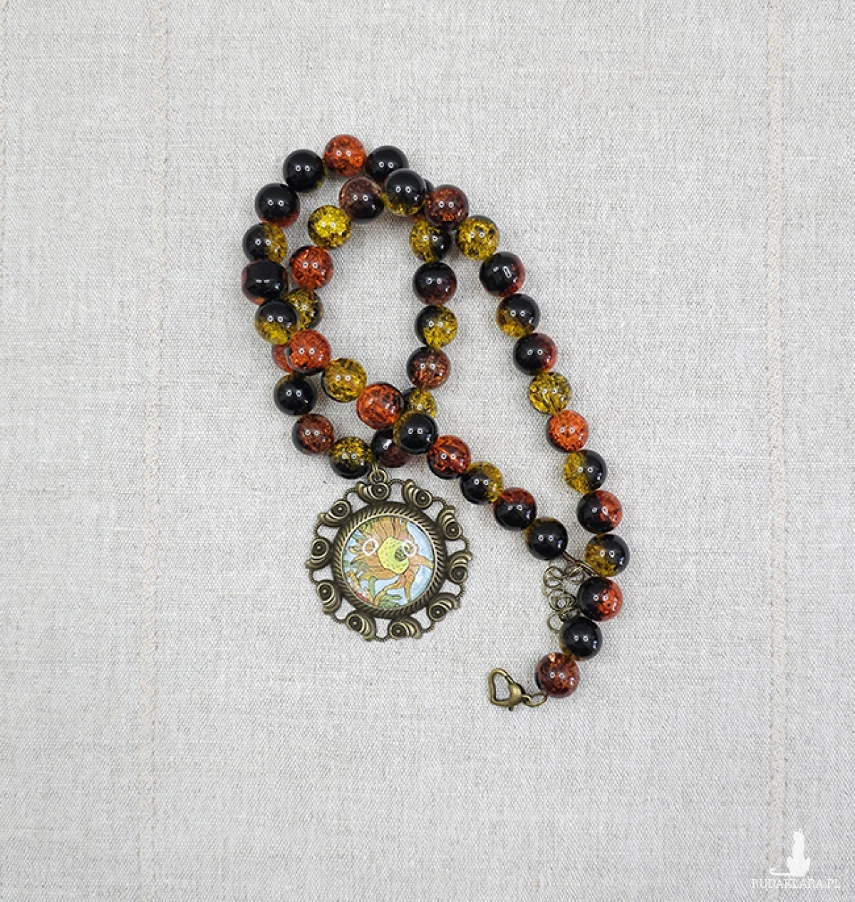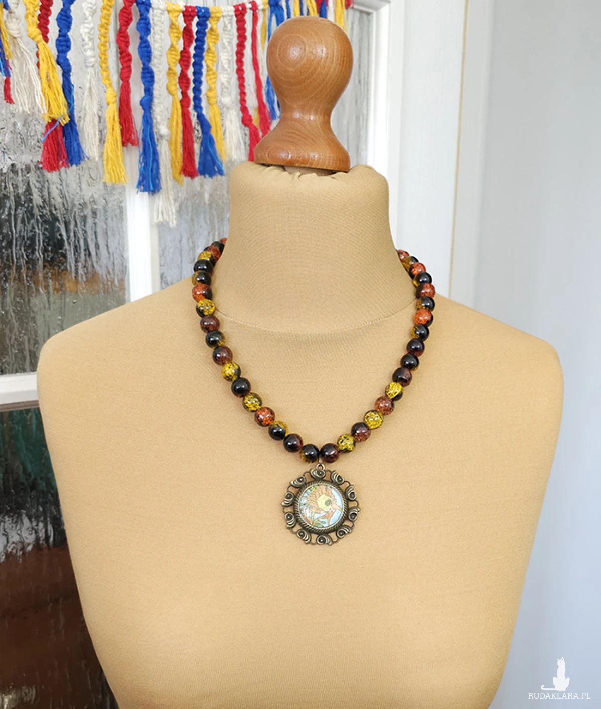 6742 naszyjnik z wisiorkiem; wisiorek słonecznik; kolory ziemi