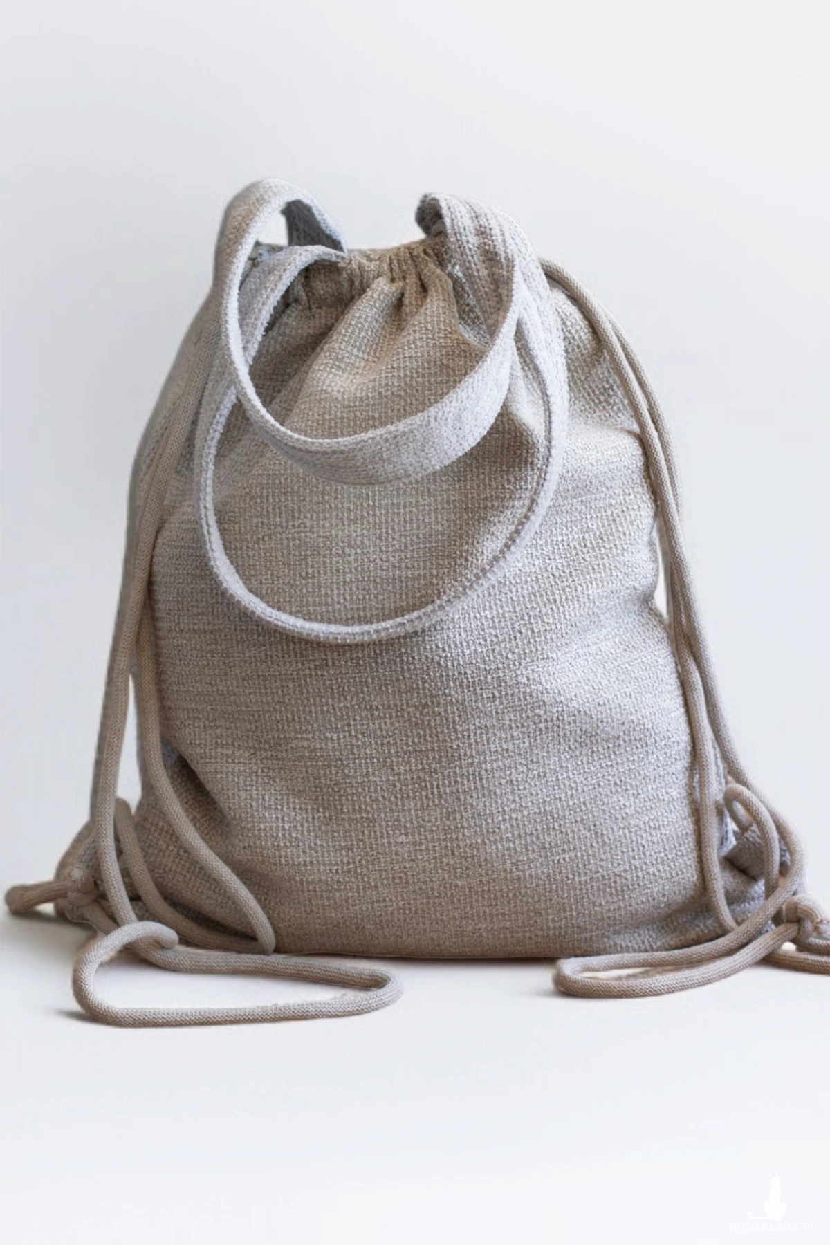 Plecakotorba worek 2w1 wykonana z jasnej plecionki.