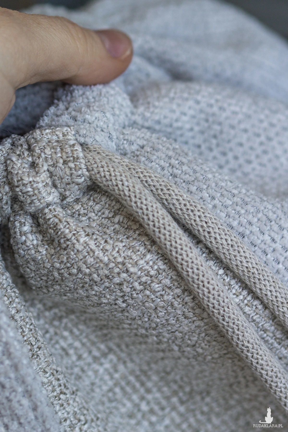 Grube, bawełniane sznurki w kolorze beżowym.