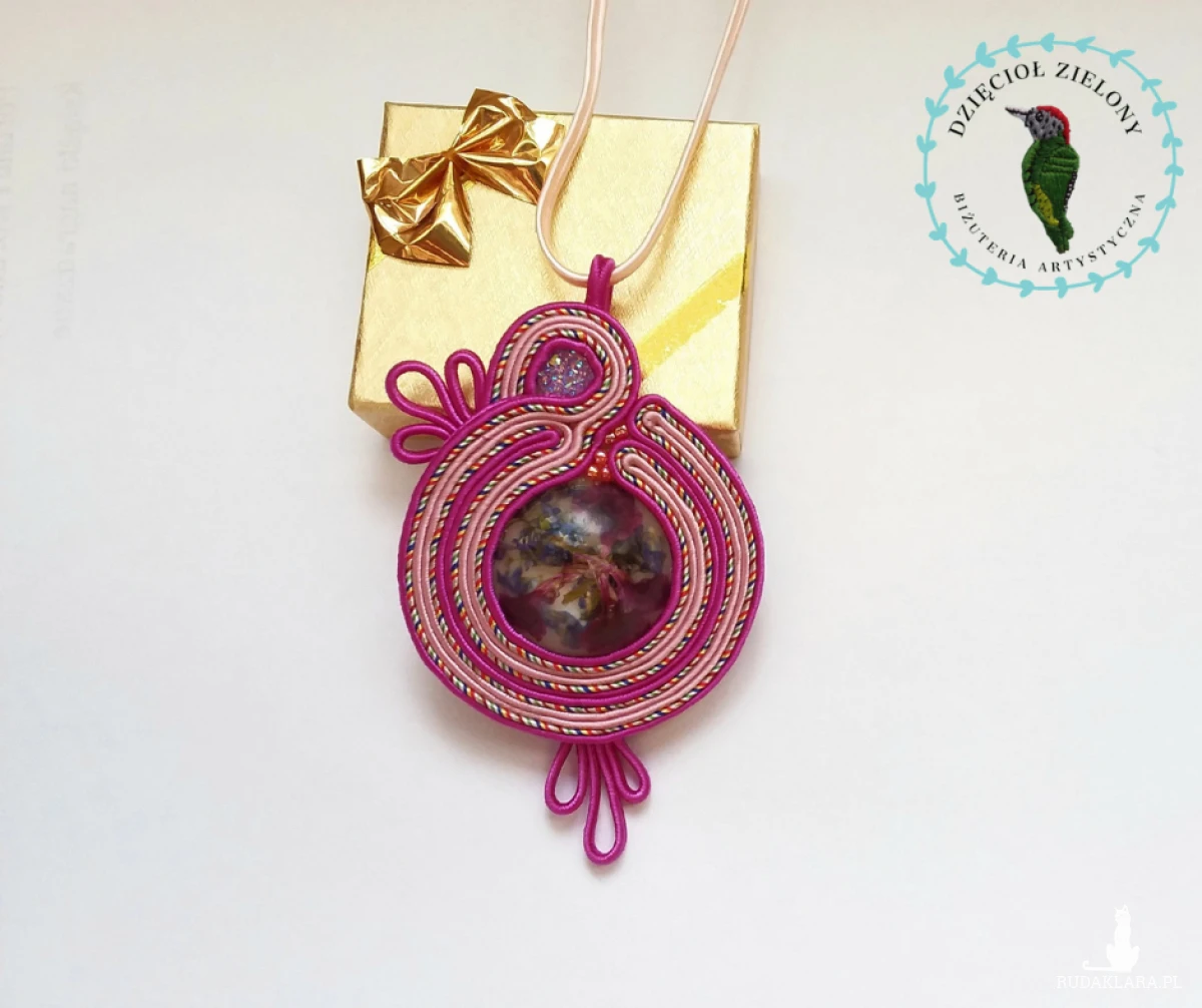 Ręcznie szyty wisiorek wykonany w technice sutasz