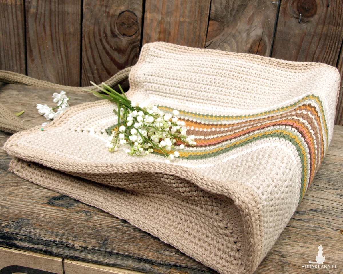 Okrągłe rączki są także wykonane ręcznie na szydełku, dodatkowo dla wzmocnienia wypełnione bawełnianym sznurkiem.