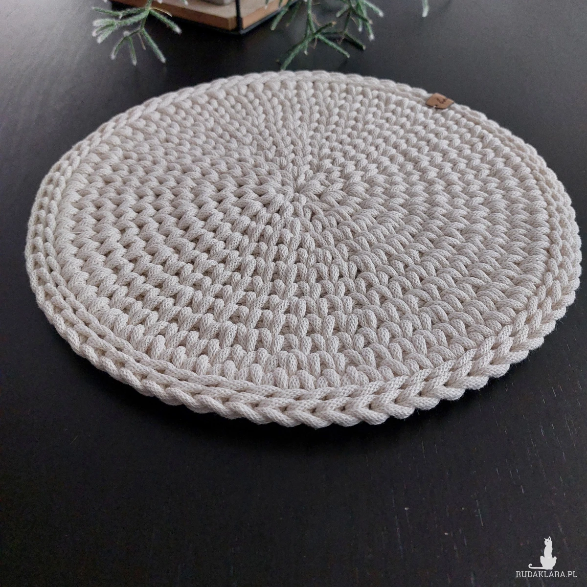 Do zaoferowania mam podkładki pod talerz wykonane ze sznurka bawełnianego o śr 3 mm w kolorze kremowym ( możliwość wykonania innego koloru)