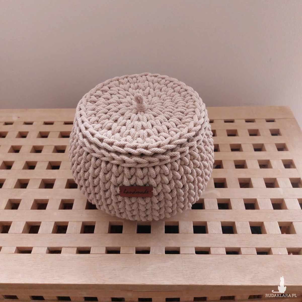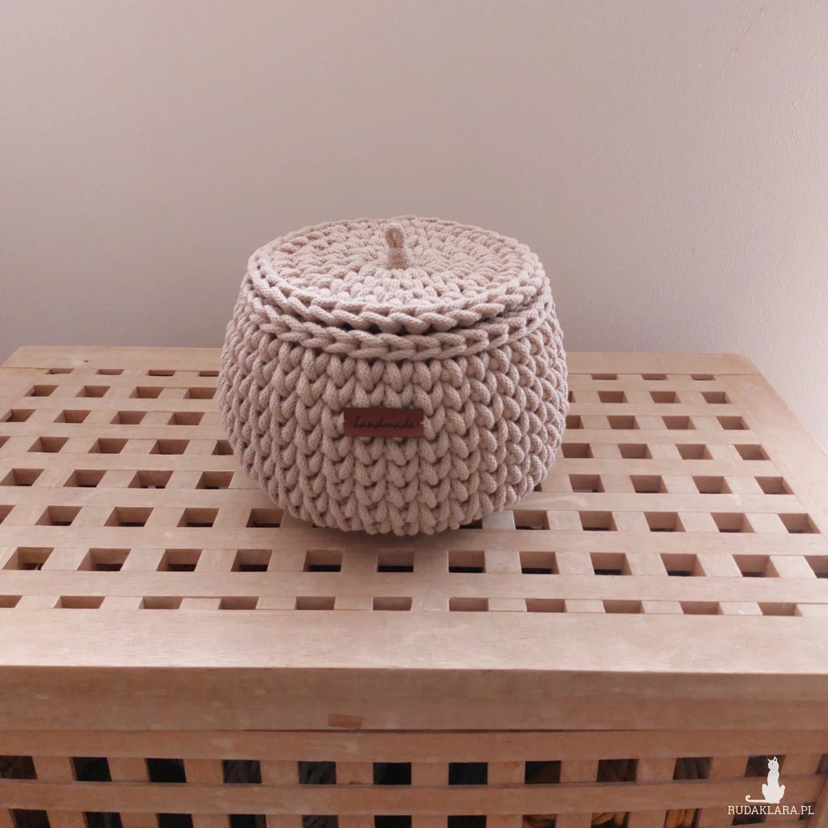 Na sprzedaż oferuję koszyk z pokrywką ze sznurka bawełnianego w kolorze beżowym ( istnieje możliwość wykonania w innym kolorze).