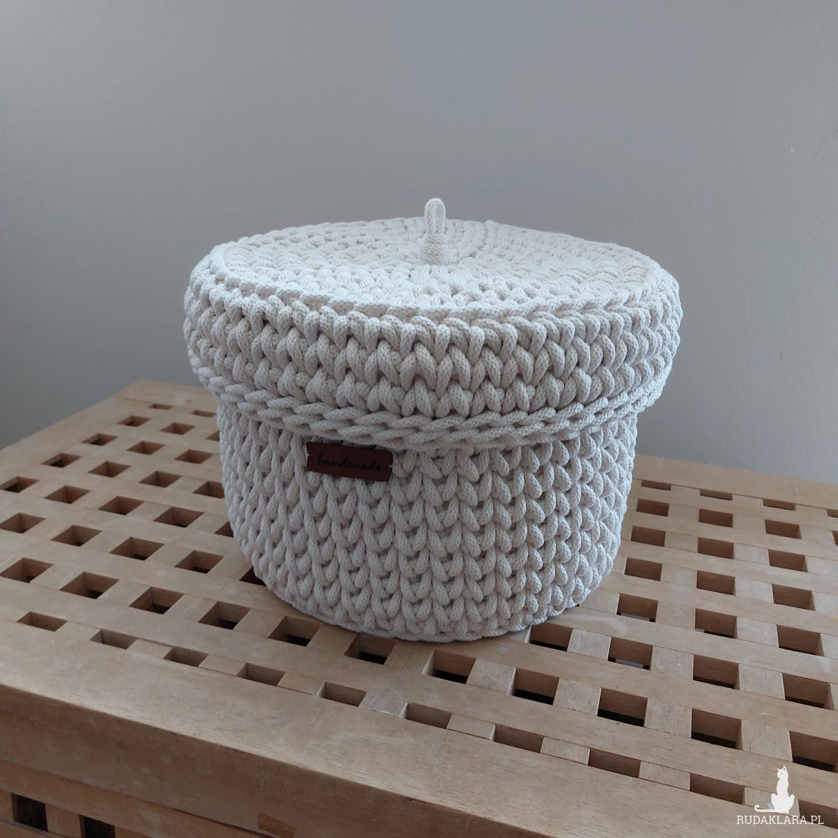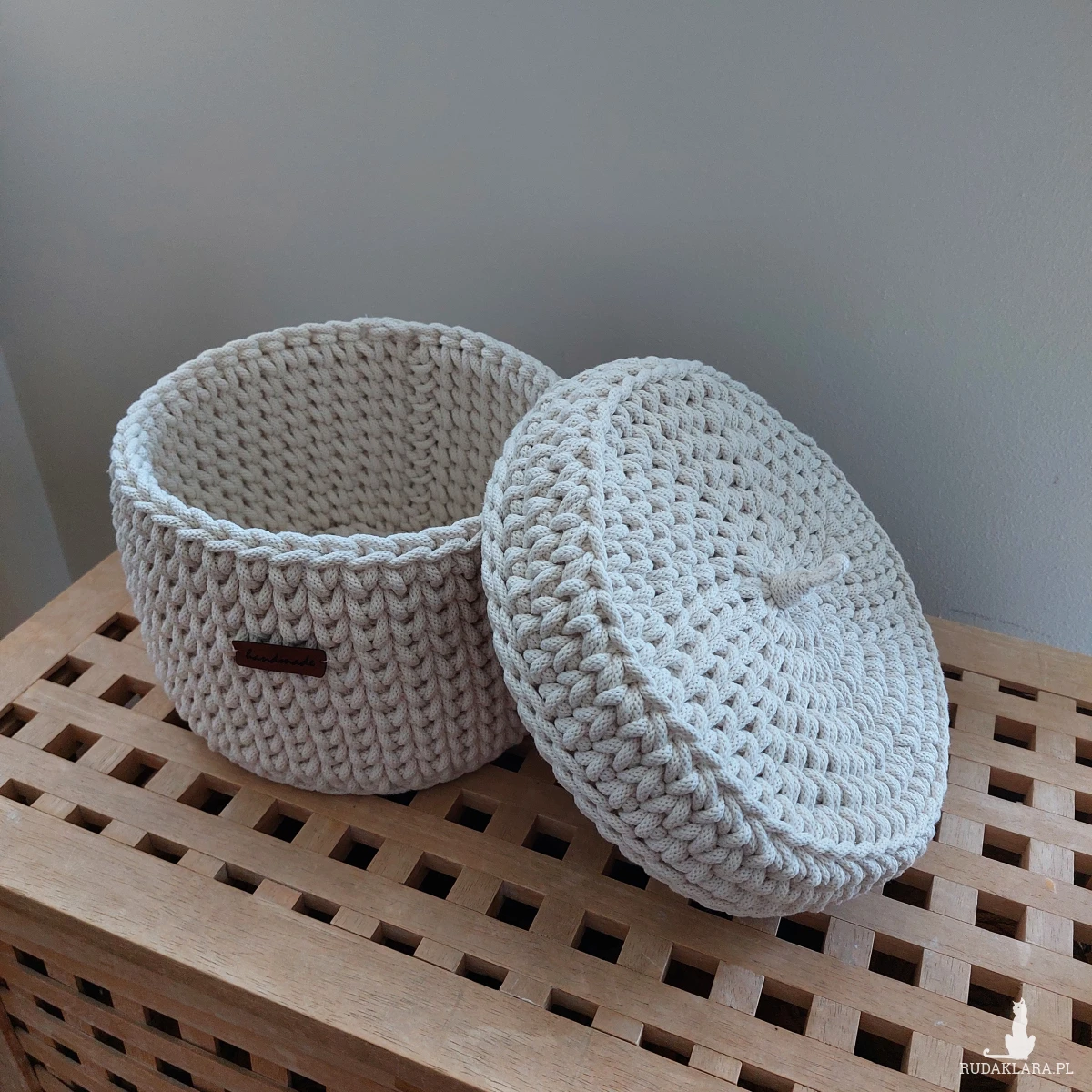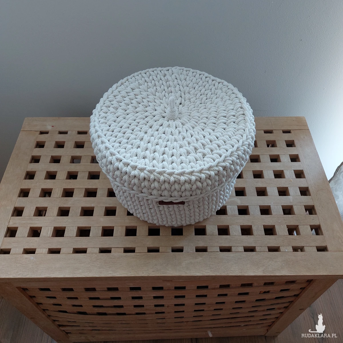 Na sprzedaż oferuję koszyk z pokrywką ze sznurka bawełnianego w kolorze kremowym( istnieje możliwość wykonania w innym kolorze).