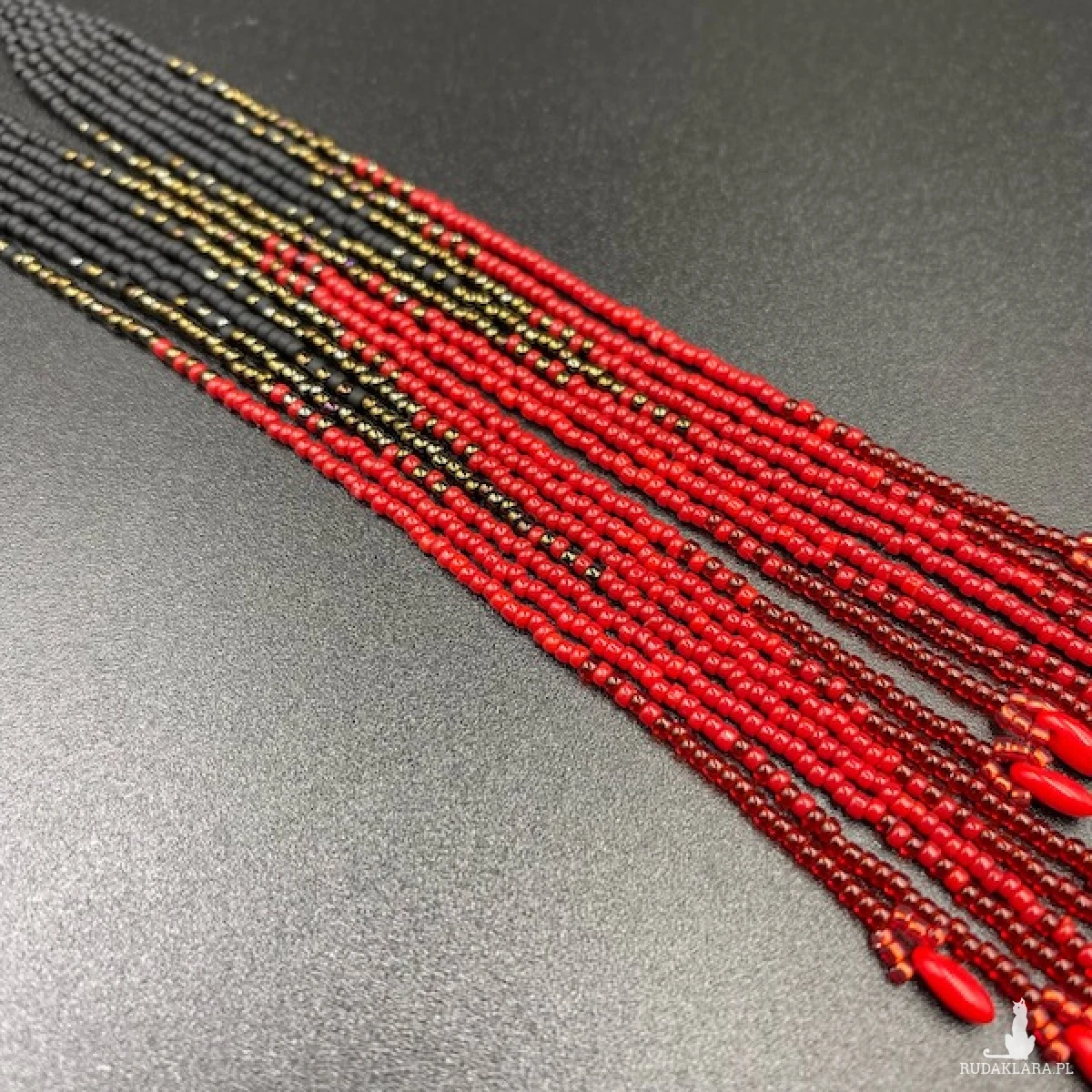 Kolory kolczyków : czarny, metaliczny brąz, odcienie czerwieni.