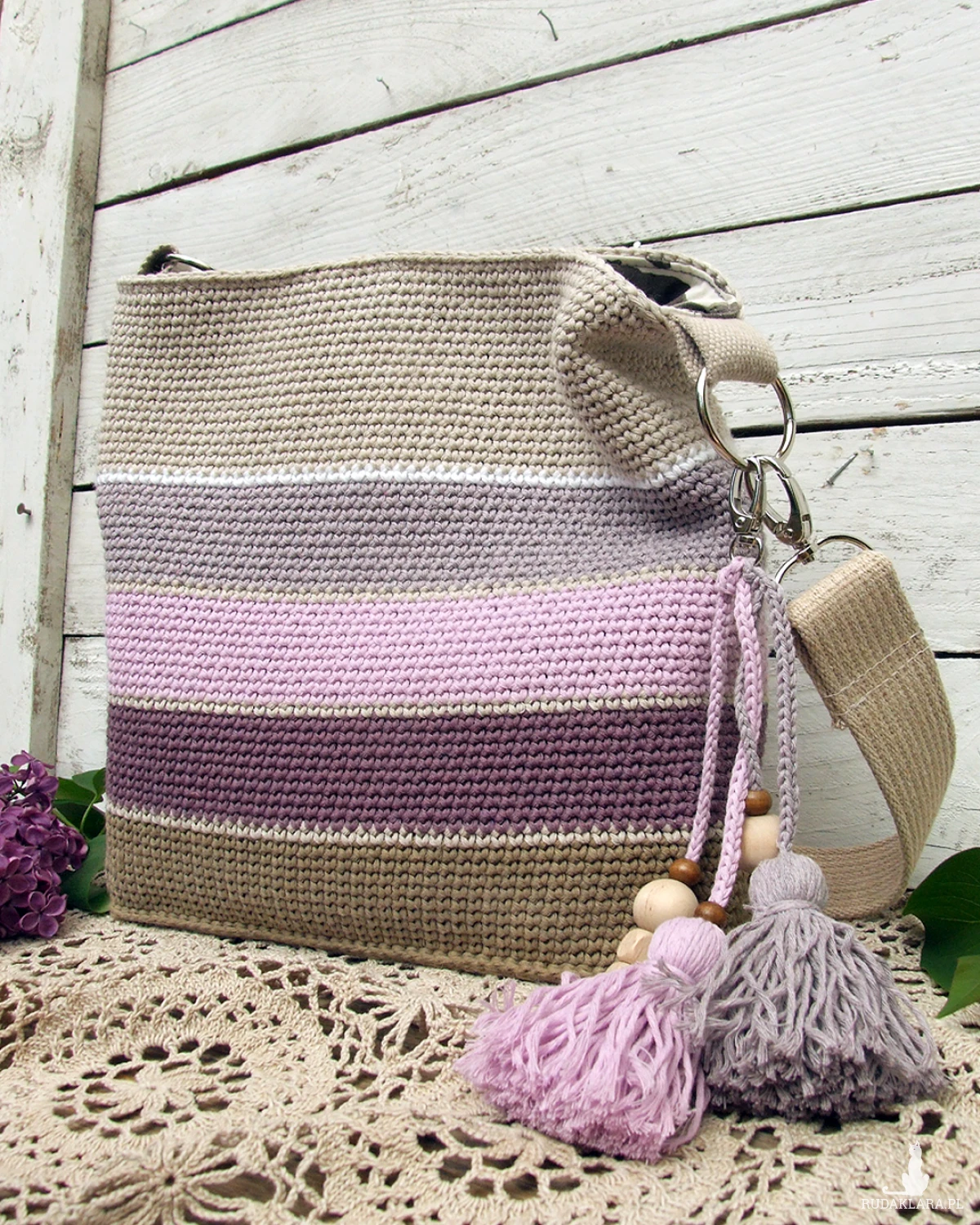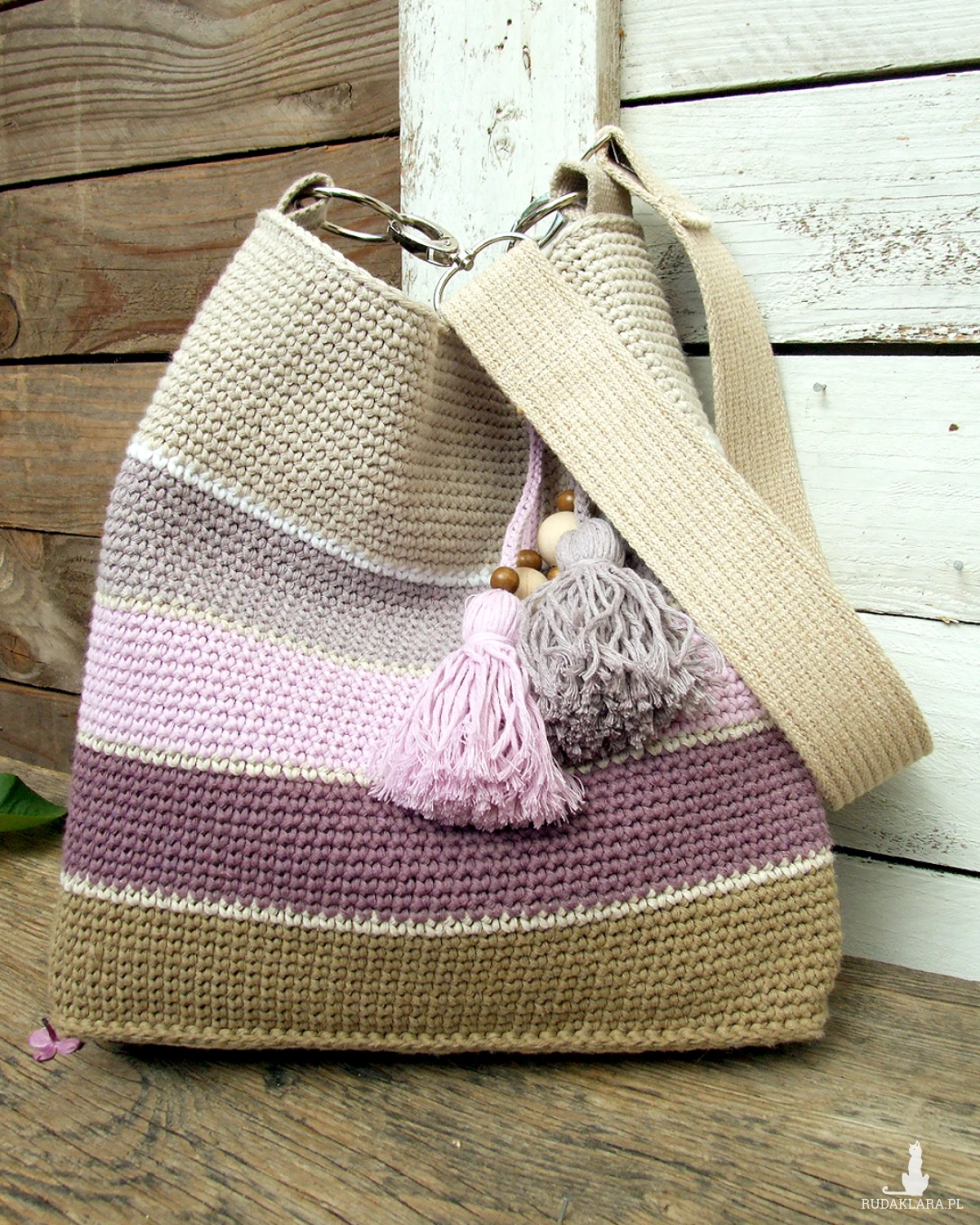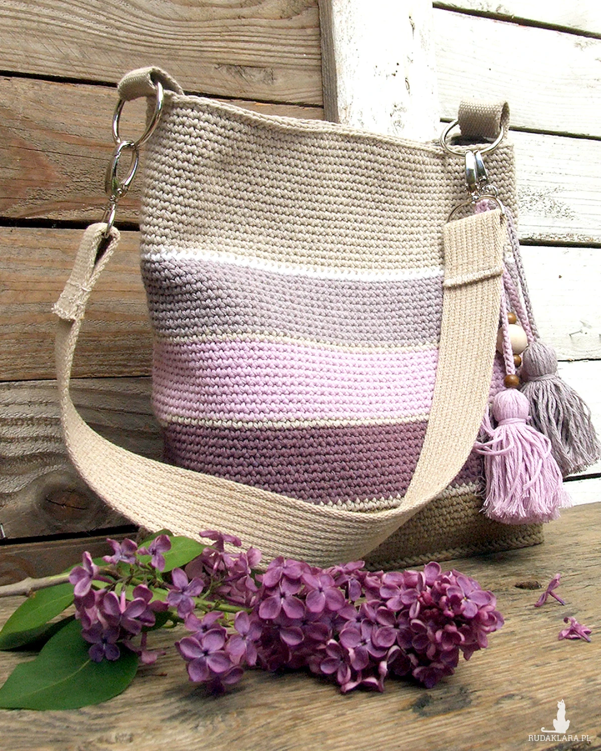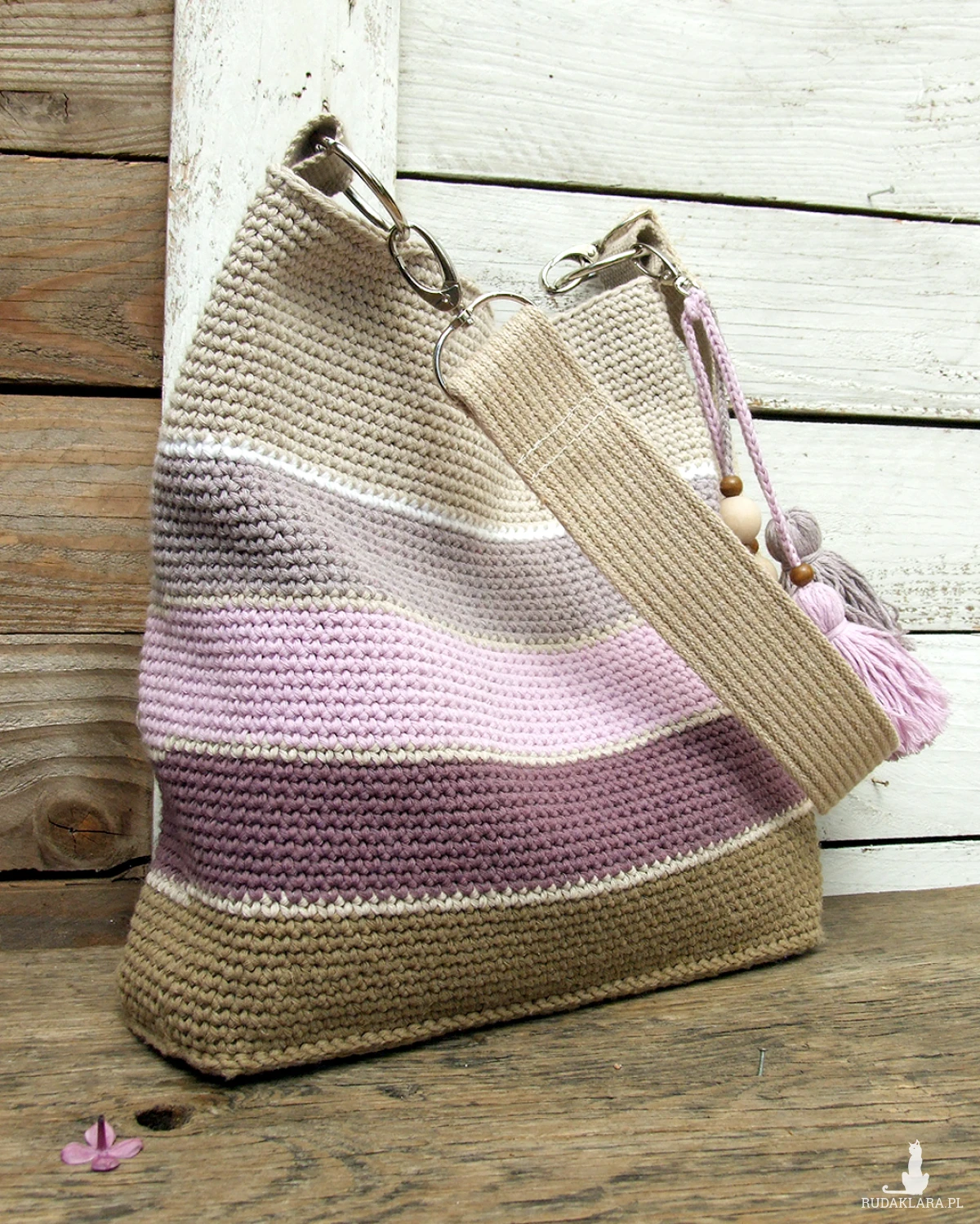Torebka na ramię, szydełkowa, bawełniana - Wrzosowisko