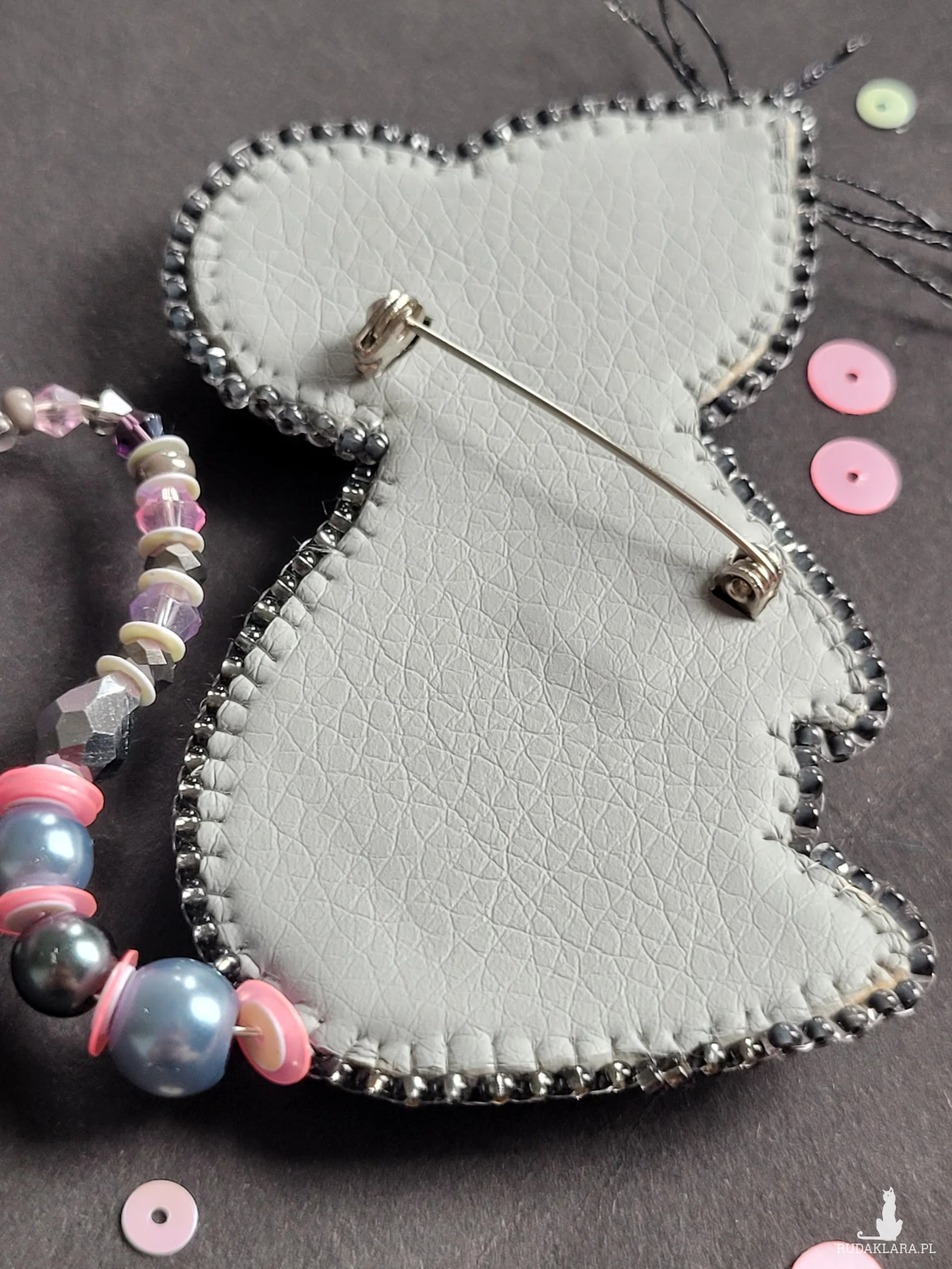 • sztuczna skóra (tył broszki),