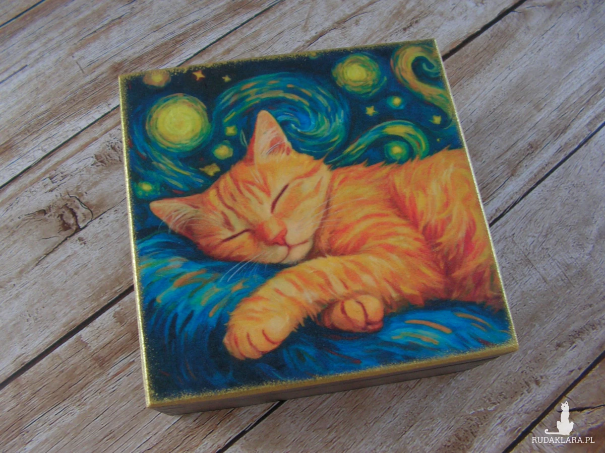Grafika z motywem śpiącego kociaka na papierze ryżowym o gramaturze 30g/m2.
