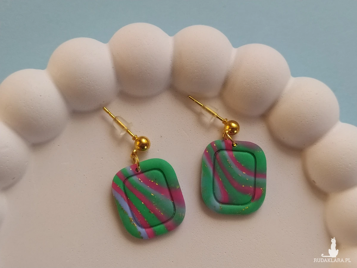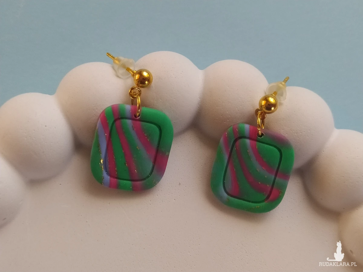 "Atria I" - kolczyki wykonane ręcznie z gliny polimerowej.