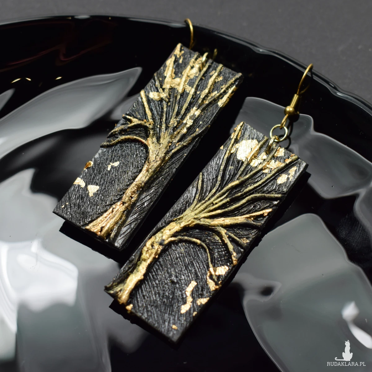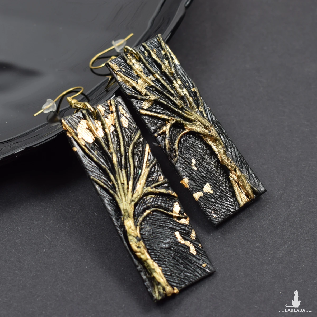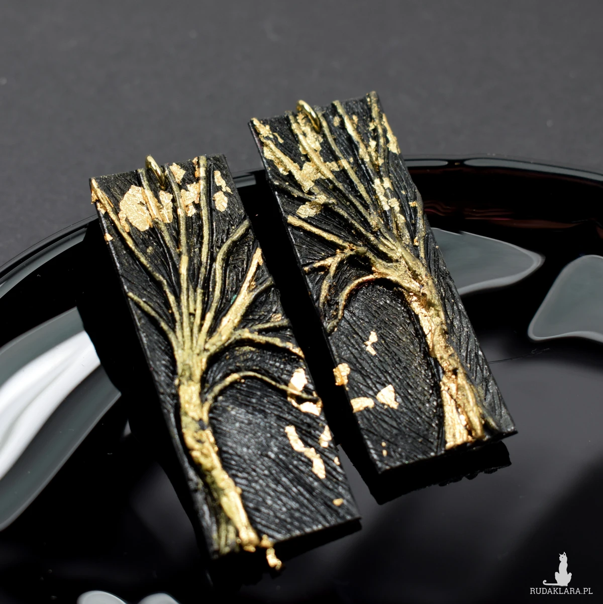 Czarno-złota kolorystyka oraz motyw drzewa nadają im wyrazisty, przyciągający uwagę charakter.