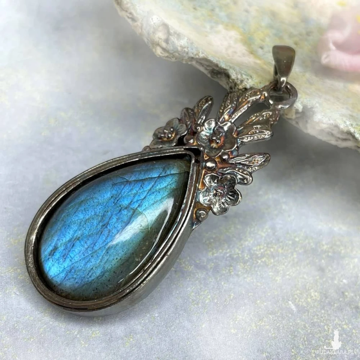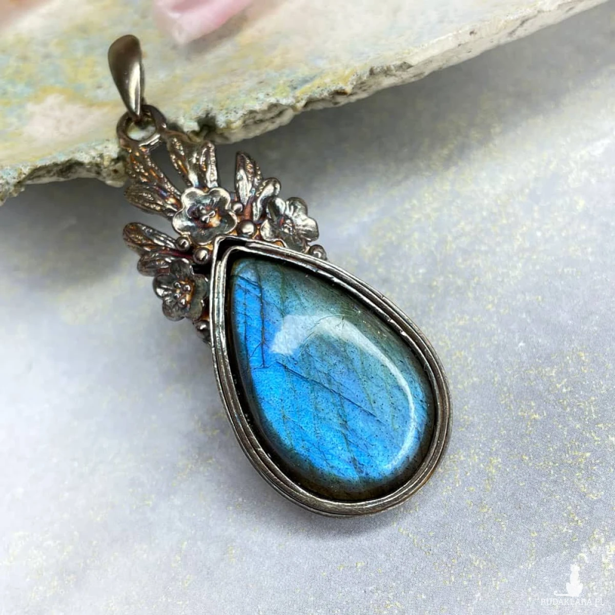 Ten srebrny wisior z labradorytem to połączenie subtelnej elegancji i artystycznego wyrazu. Hipnotyzujący kamień o niebieskim ogniu przyciąga wzrok i sprawia wrażenie, jakby skrywał w sobie tajemnicę. Jego chłodny blask doskonale współgra z detalami w kształcie kwiatów, tworząc kompozycję, która balansuje między romantyzmem a nowoczesną formą. Ręcznie wykonana oprawa ze srebra podkreśla wyjątkowość kamienia, a całość sprawia wrażenie małego talizmanu noszonego na co dzień. To biżuteria dla kobiet, które cenią indywidualność i dopracowane detale. Wisior świetnie odnajdzie się zarówno w codziennych stylizacjach, jak i jako wyjątkowy dodatek do bardziej eleganckich zestawów – dodając im charakteru i głębi.