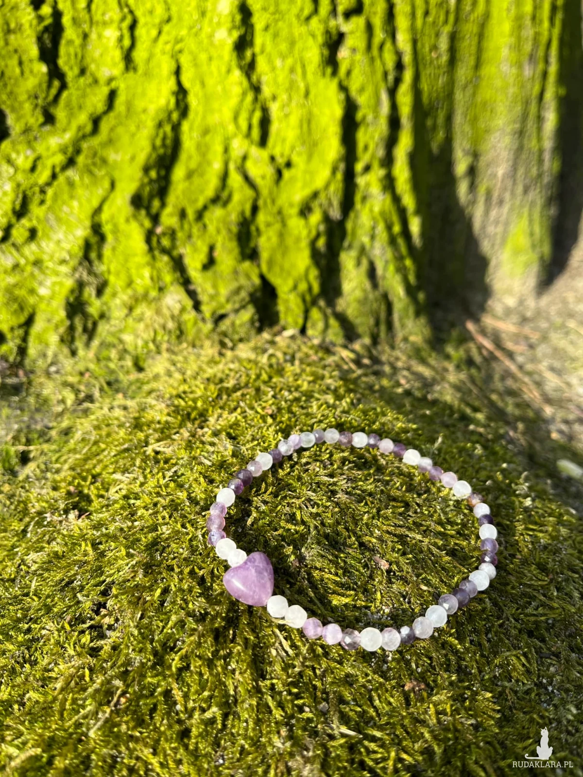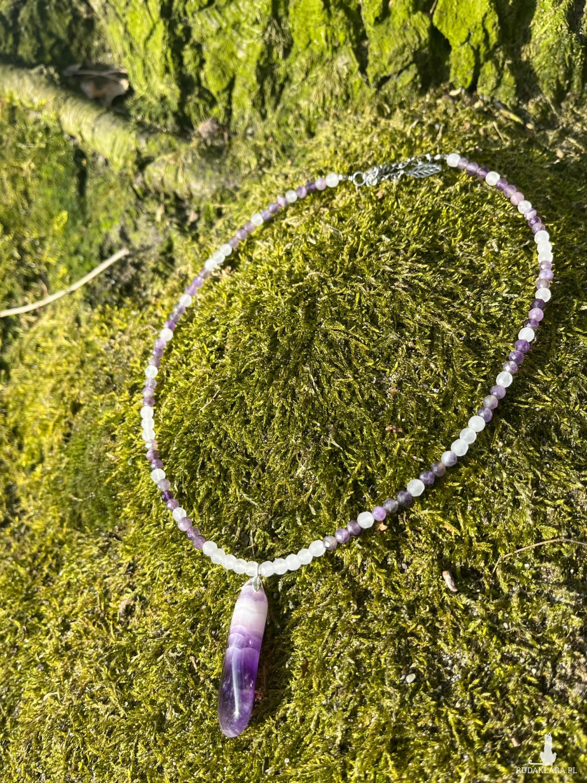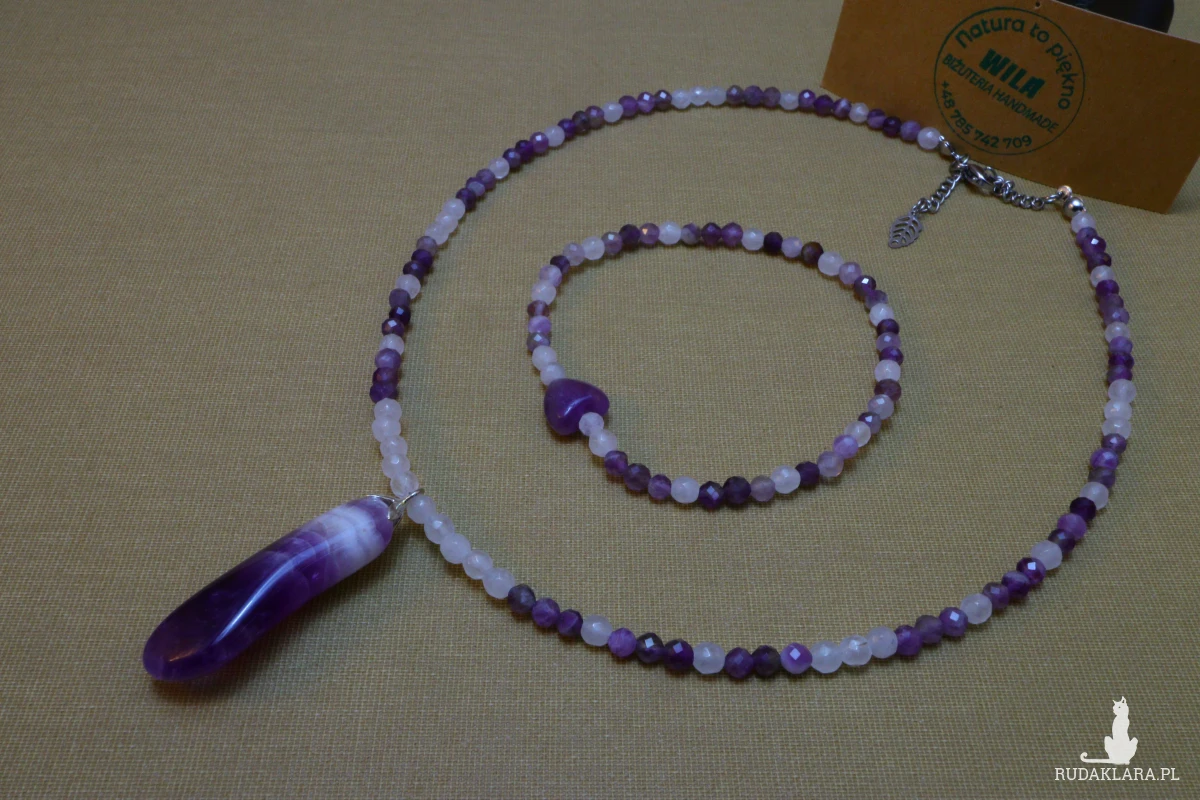 Kamienie użyte w komplecie to Jadeit biały oraz Ametyst.