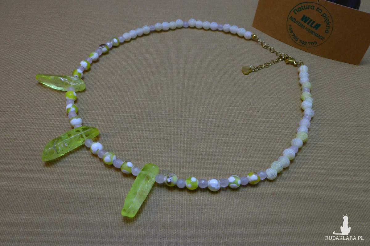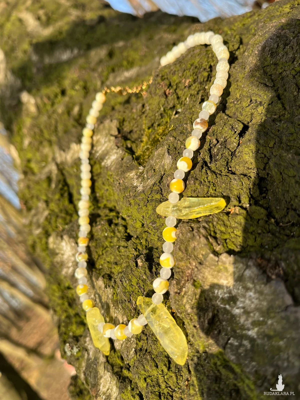 groty z kwarcu żółtego, agatu żółtego trawionego oraz jadeitu białego.