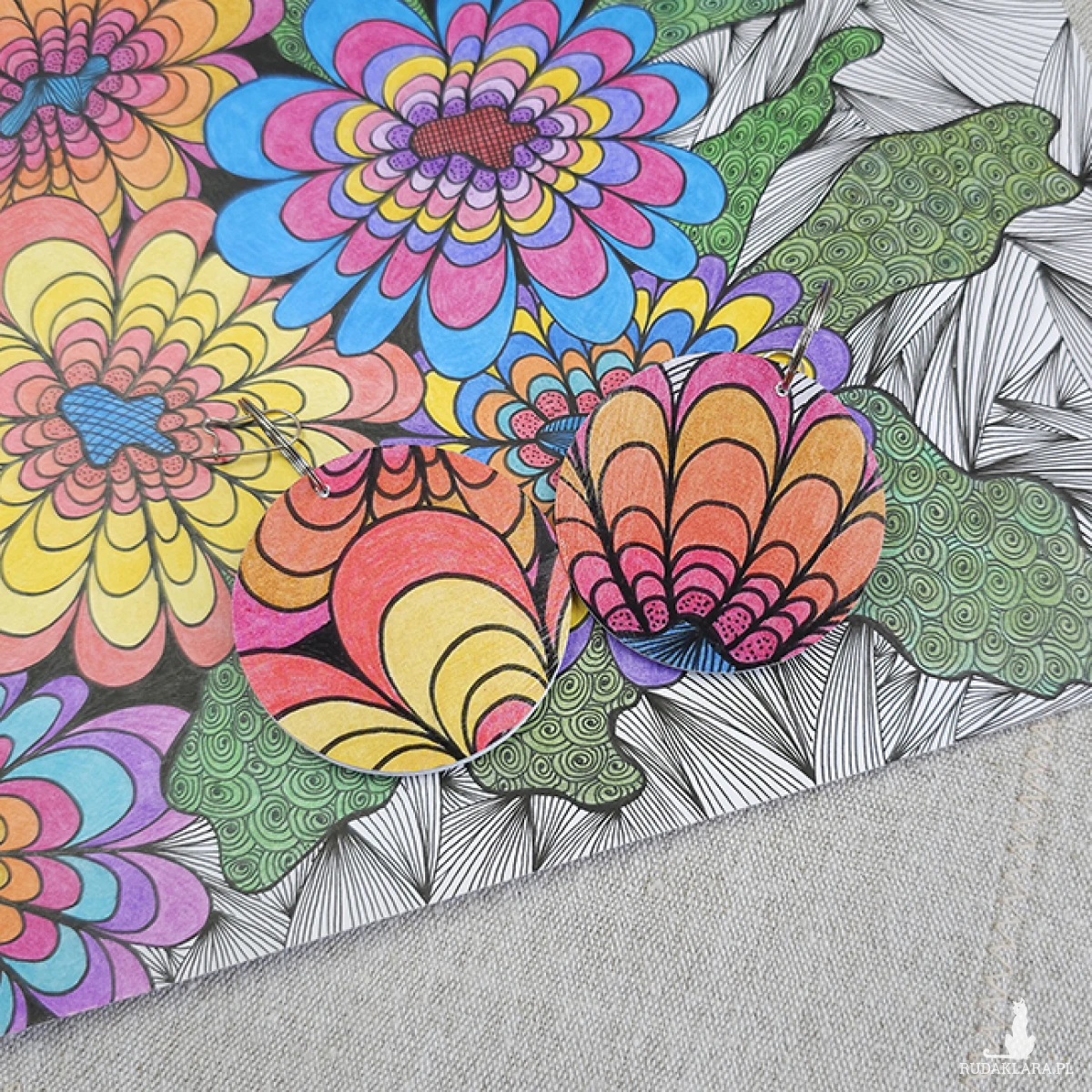 6760 kolorowe, niepowtarzalne, duże, dwustronne kolczyki