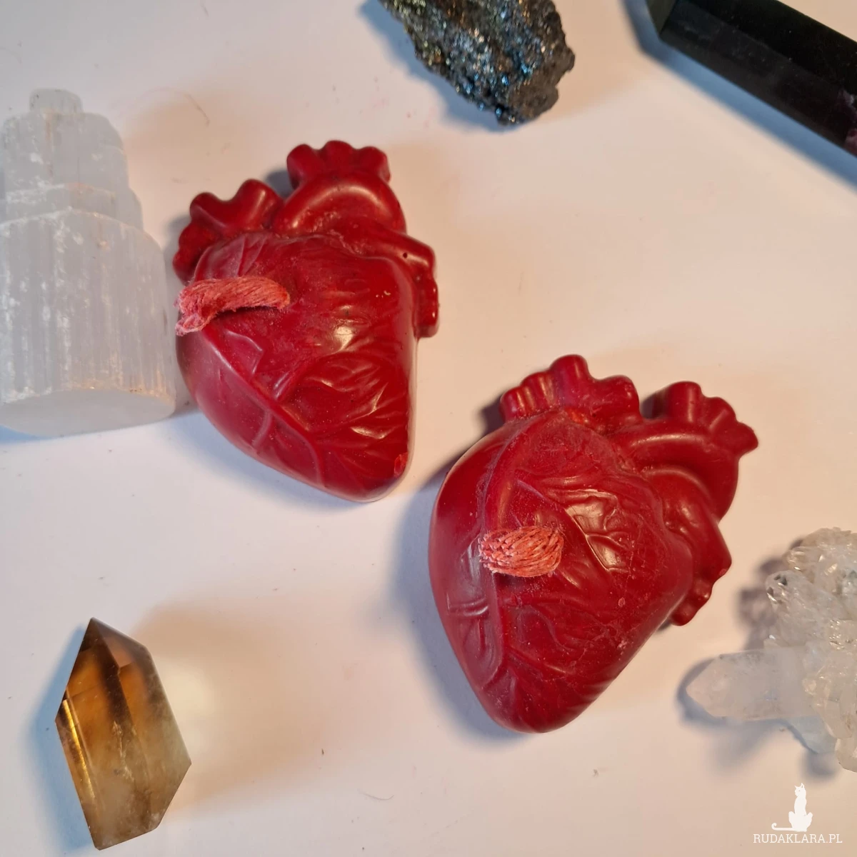 świeczka w kształcie serca z wosku palmowego o zapachu piwonii i maliny z różą