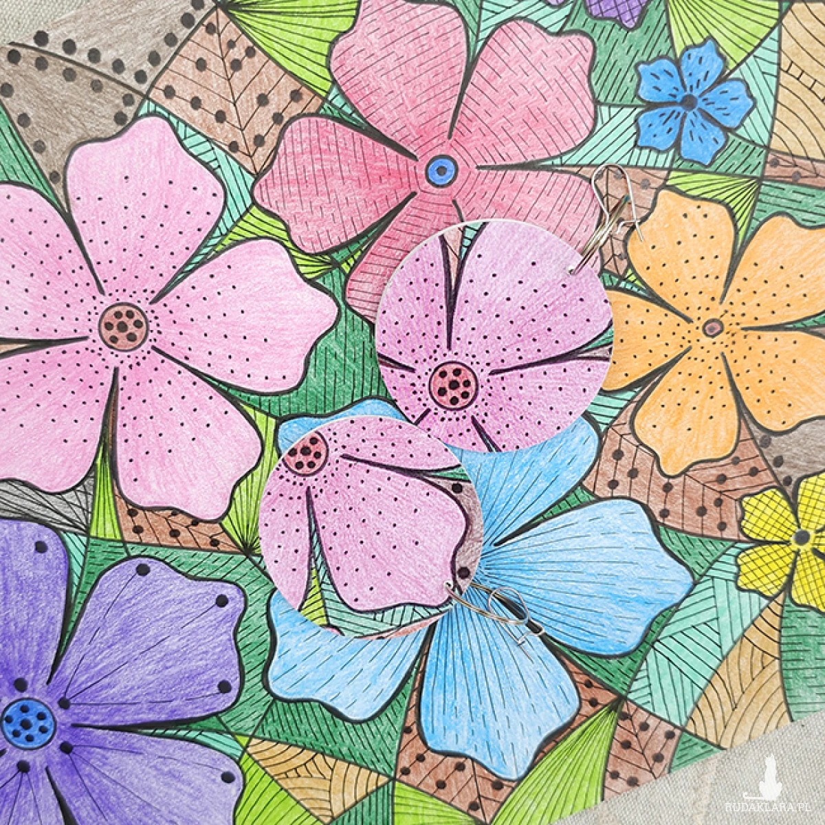 6761 kolorowe, niepowtarzalne, duże, dwustronne kolczyki