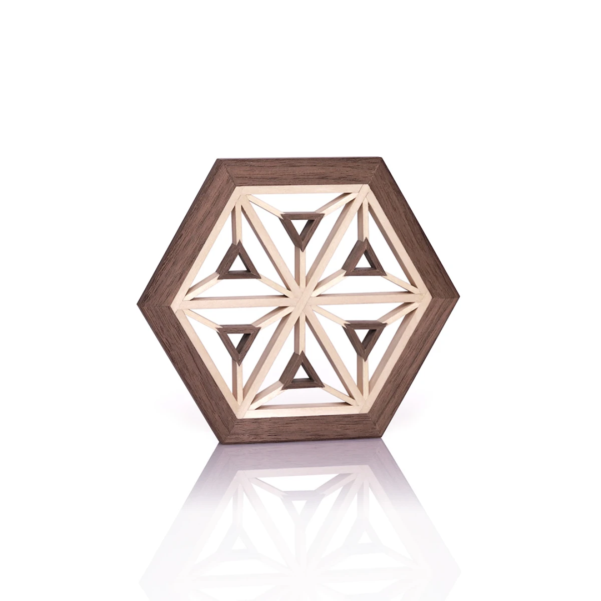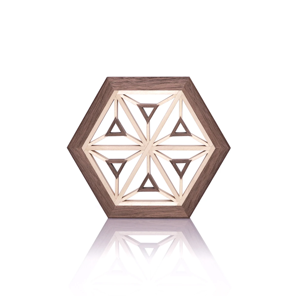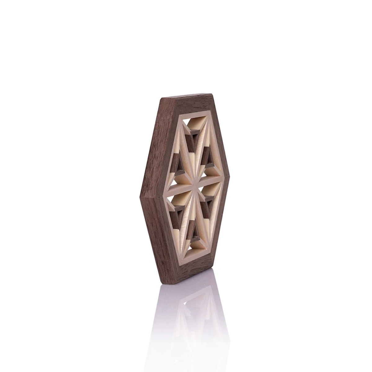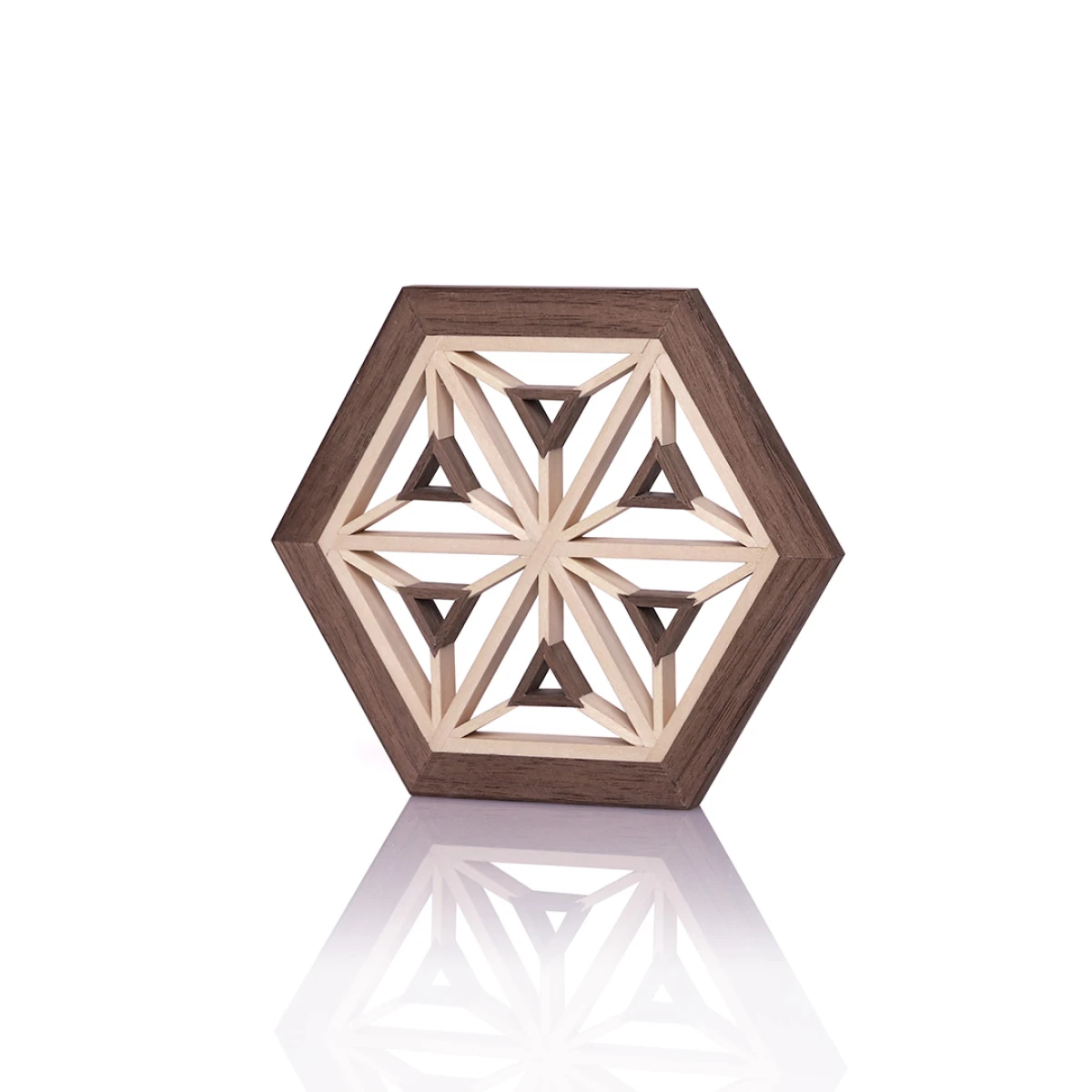 Podkładka pod kubek drewniana z wzorem Kumiko Kikyō asa no ha sześciokątna wariant dark
