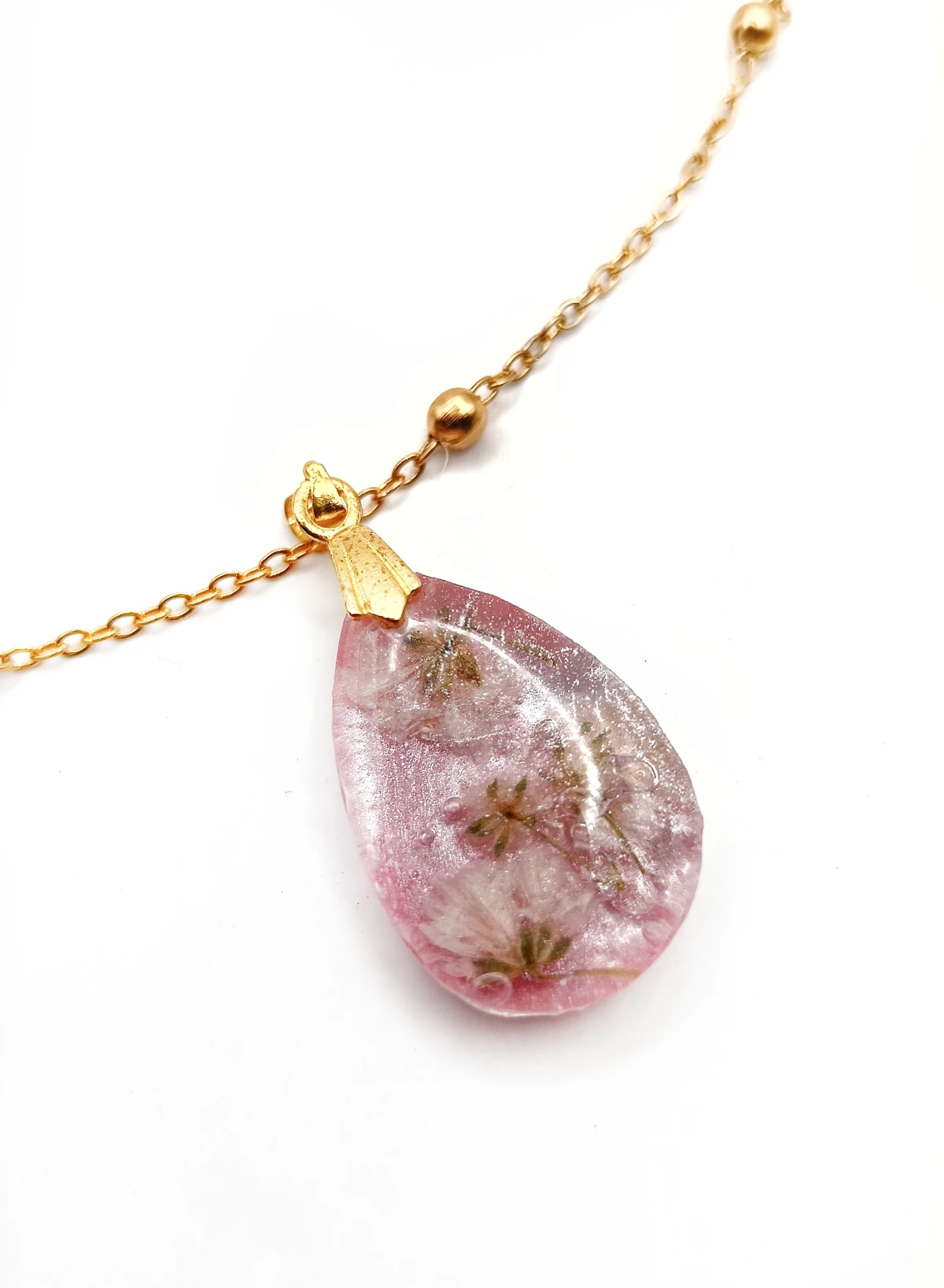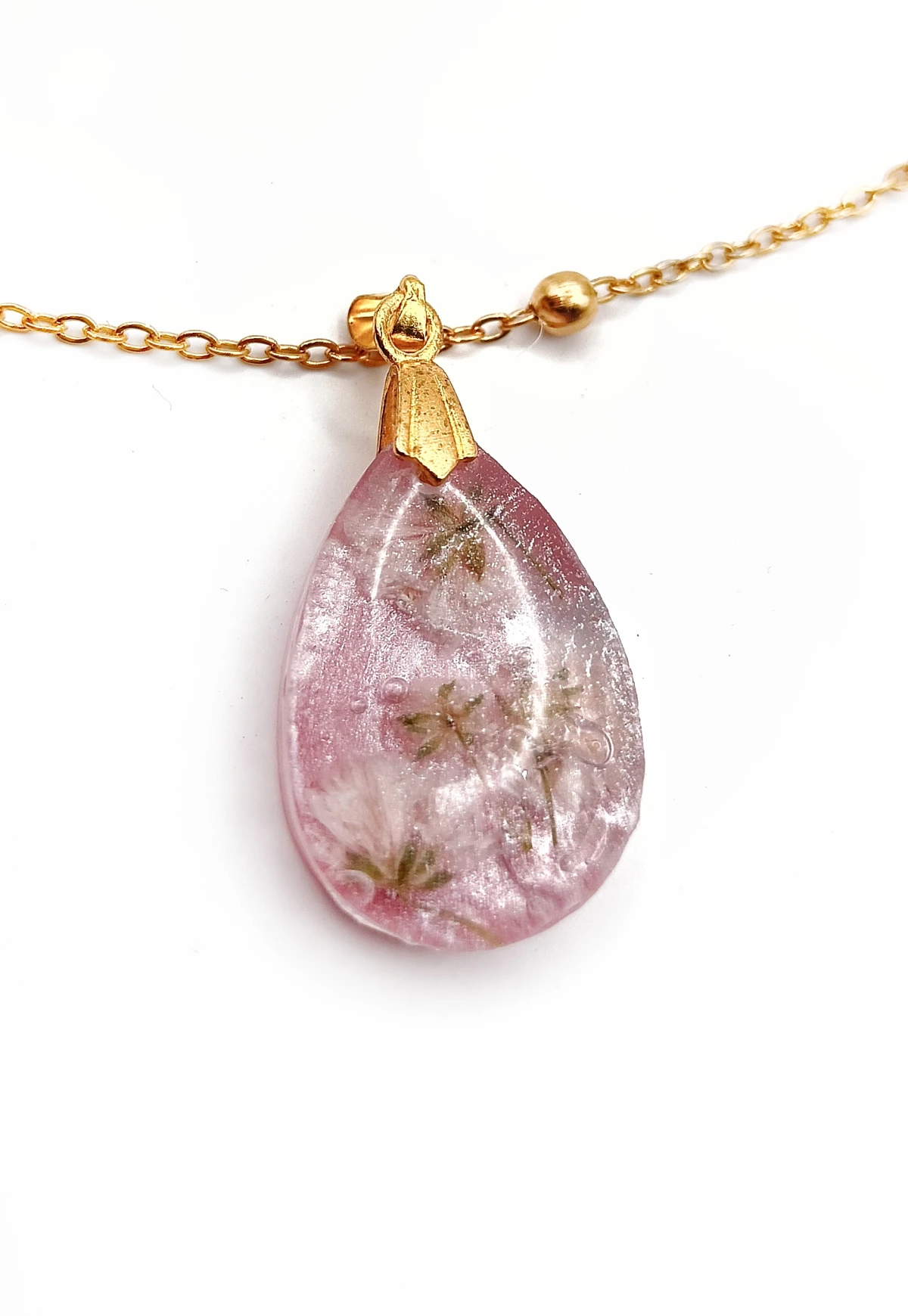 Odkryj wyjątkowy wisiorek w kształcie kropli, który łączy romantyczny odcień pudrowego różu z naturalnym pięknem suszonej gipsówki. Ten ręcznie wykonany wisiorek to idealny wybór dla miłośniczek delikatnej, kobiecej biżuterii z nutą boho.