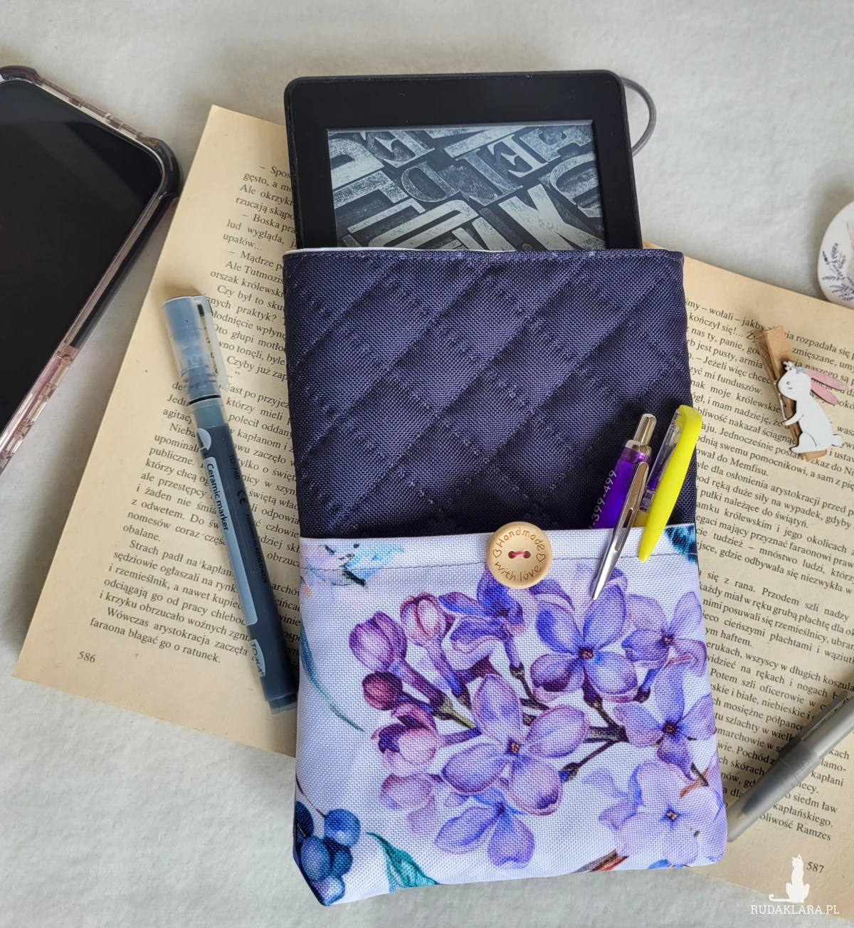 Etui na czytnik: lilak (M: 15x21 cm)