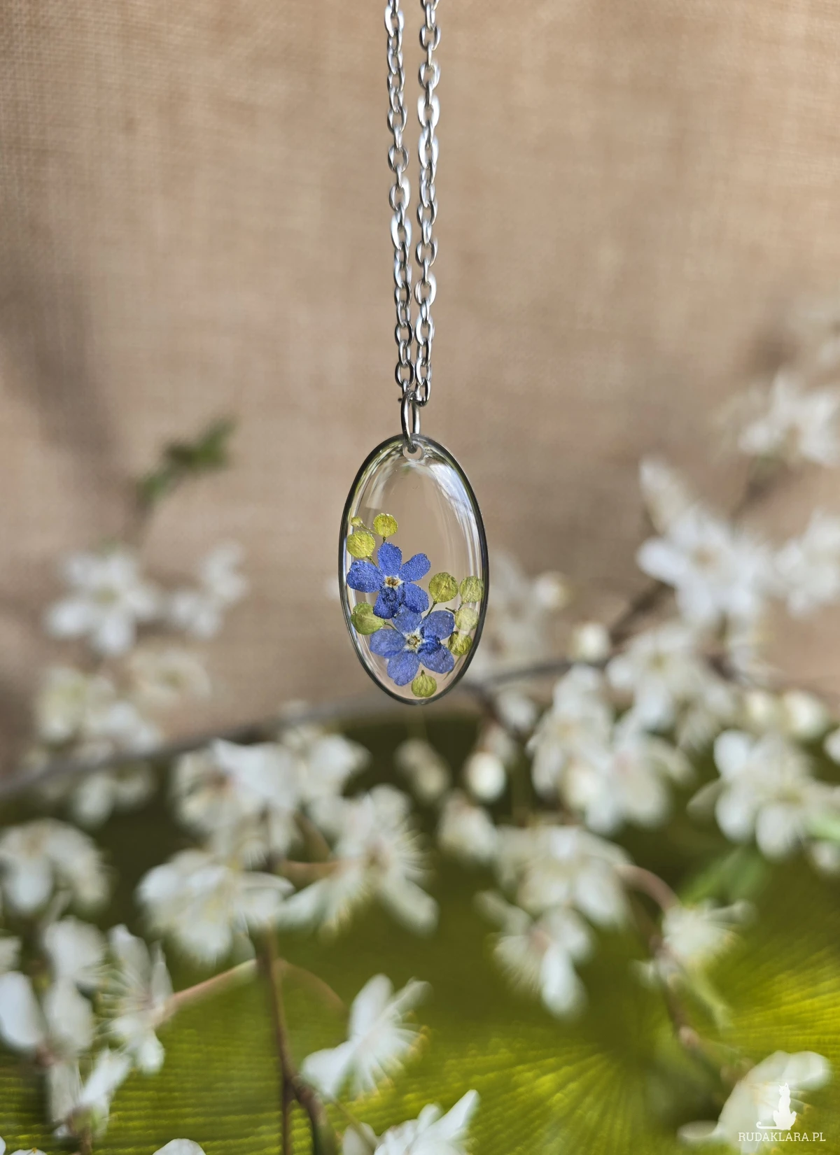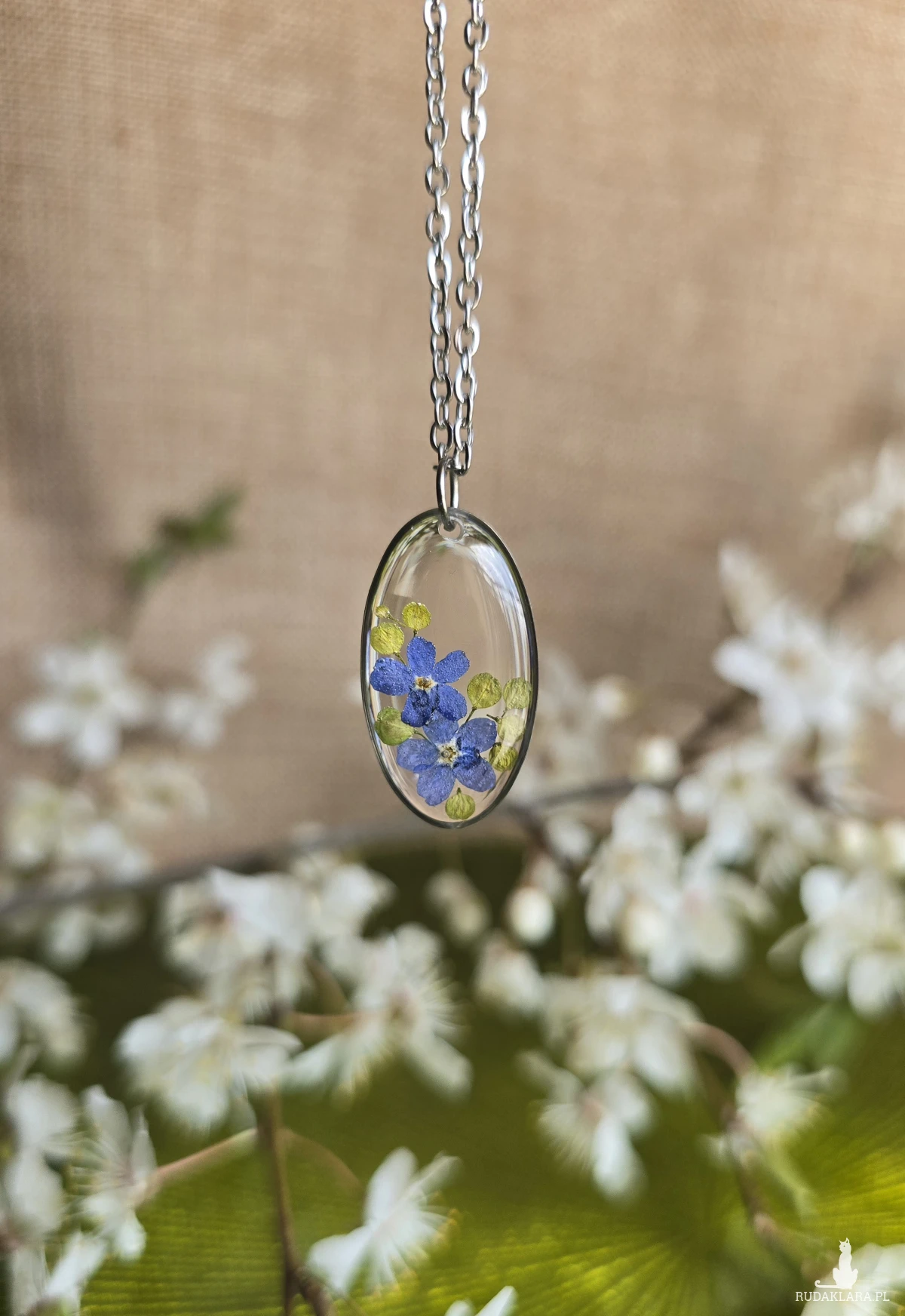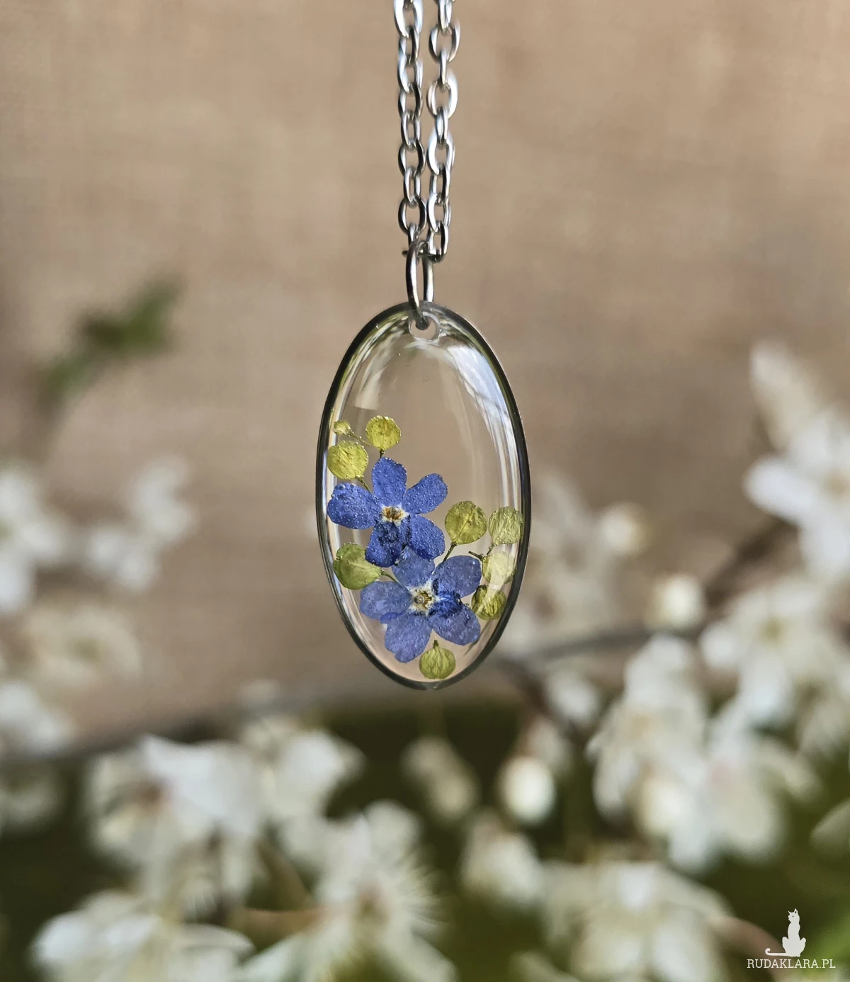 Oferuję Państwu unikalną biżuterię. Zawieszka jest wykonana z suszonych kwiatów i żywicy epoksydowej. Biżuteria jest wspaniałym i oryginalnym prezentem na lata.